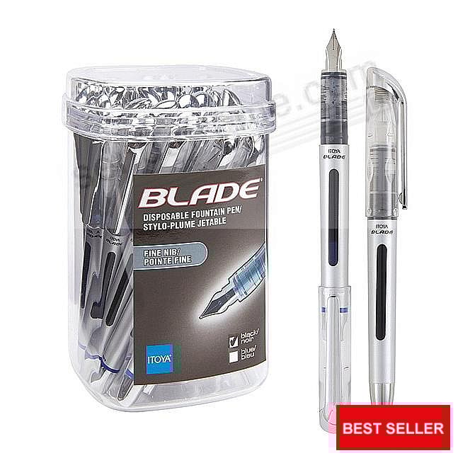 Main view Product Details Itoya Studio BLADE BLACK Ready-to-Write Fountain Pen by Itoya | BUY a BUCKET and SAVE — The revolutionary BLADE disposable fountain pen, from ITOYA®. Now in a specially priced bucket of 24 pens. Stunning sleek design, advanced ink technology at a surprisingly affordable price. The new benchmark for all writing instruments. It features: 24 piece pack - specially priced Fully functioning fountain style pen - but disposable Lightweight, well-balanced barrel with translucent, see-thru design Flow-through design for effortless, clog-free writing Priced far less than comparable fountain pens Produced by Itoya® for SendAFrame. To view all styles, click: Itoya® Photo Filing Systems BLADE BLACK Ready-to-Write Fountain Pen by Itoya | BUY a BUCKET and SAVE ITOYA® Stock-up SAVINGS - ends Sunday: Buy More / Save More * Add this item to your cart for the full details of this promotion. Conditions may apply. Model #075633304337 List $100.00 You pay $89.95 This item IS in stock and can be expected to ship 01/27/2026 In stock Your Price Match is Active Your request for a price of $0.00 for a minimum quantity of has been accepted. You have [time] left to purchase this item for $0.00 instead of $89.95 each. Find a Lower Price? We BEAT All Authorized Retailers [?] FEATURESMaterial:Archival | Photo-SafeFinish:BlackOccasion:Back to School, Business & office, Christmas, Corporate gifts, Father`s Day, Graduation, Hanukkah, Mother`s DayStyle:Contemporary, Travel ReadyBrand:Itoya StudioDisplay Type:not applicable n/a This item ships in its own box SHARE THIS ITEM Share on Facebook