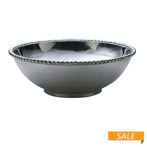 Main view Product Details Mariposa® The Original PEARLED LARGE CELEBRATION 13in BOWL by Mariposa® — The unique CELEBRATION SERVING BOWL in Mariposa's signature "string of pearls" pattern. 13" diameter; 4" height. Pearls follow the flowing contours -- serve up an individual helping of organic elegance in this classic shape with flair. A luxurious wealth of pearls, in a refined, formal setting that’s also whimsical because of its sheer impossibility. Stark flowing lines play off a multitude of pearls in a collection that looks back to another candlelit century while still looking ahead—and thus feels at home anywhere. SendAFrame stocks the entire Mariposa® picture frame line - and associated pattern pieces like this special bowl. To start - or add to your collection, click: Mariposa® Design Collection Product Care: Mariposa metals are handcrafted from 100% recycled aluminum All items are food-safe and will not tarnish Handwash in warm water with mild soap and towel dry immediately Do not place in dishwasher or microwave Avoid extended contact with water, salty or acidic foods; coat lightly with vegetable oil or spray to avoid staining Warm to 350 degrees for hot foods. Freeze or chill for summer entertaining Cutting directly on the metal surface will scratch the finish Occasional use of non-abrasive metal polish will revive luster Leaving other metals on metal surfaces may cause discoloration The Original PEARLED LARGE CELEBRATION 13in BOWL by Mariposa® Mariposa® HOLIDAY CELEBRATION Savings - Buy More / Save More * Add this item to your cart for the full details of this promotion. Conditions may apply. Model #808813079110 List $250.00 You pay $134.90 In stock Ships next business day [?] Your Price Match is Active Your request for a price of $0.00 for a minimum quantity of has been accepted. You have [time] left to purchase this item for $0.00 instead of $134.90 each. Find a Lower Price? We BEAT All Authorized Retailers [?] FEATURESMaterial:AluminumFinish:SilverOccasion:Anniversary, Birthday, Christmas, Congratulations, Engagement, Group Events + Parties, Friendship, Good luck, Housewarming, Inspirational, Thank-Motivate-Reward, WeddingStyle:Contemporary, Santa Fe, Shabby Chic, Sports & leisure, Eco-Friendly-Recycled, ModernBrand:Mariposa®Display Type:not applicable n/a Approx. Overall Dimensions:13"x4"x13" This item ships in its own box SHARE THIS ITEM Share on Facebook