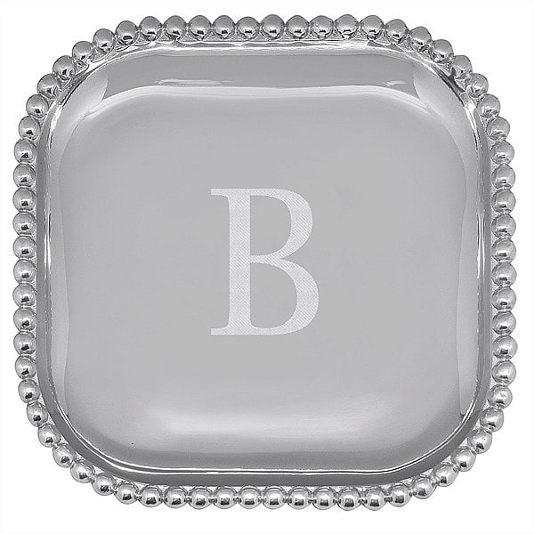 Product Details Mariposa® The original PEARLED 10in SQUARE PLATTER Engraved -B- by Mariposa® — The "B" Engraved PEARLED PLATTER, hand-crafted by Mariposa. People love the Mariposa casual, sculpted elegance paired with their strong, virtually carefree material. Their artisan handcrafted look in recycled aluminum is both pleasing to the eye and touch, as well as 100% ecologically sound. Important Note: Mariposa items are hand engraved. Your piece may differ slightly from the photo. To see all monograms of this platter, click : "Pearled 10in platters - all letters" SendAFrame stocks the entire Mariposa® picture frame line - and related Brand and Design styled items like this Monogram engraved platter. To start - or add to your collection, click: Mariposa® Design Collection Product Care: Mariposa metals are handcrafted from 100% recycled aluminum Buffed until brilliant All items are food-safe and will not tarnish Handwash in warm water with mild soap and towel dry immediately Do not place in dishwasher or microwave Avoid extended contact with water, salty or acidic foods; coat lightly with vegetable oil or spray to avoid staining Warm to 350 degrees for hot foods. Freeze or chill for summer entertaining Cutting directly on the metal surface will scratch the finish Occasional use of non-abrasive metal polish will revive luster Leaving other metals on metal surfaces may cause discoloration The original PEARLED 10in SQUARE PLATTER Engraved -B- by Mariposa® Mariposa® FALL CELEBRATION Savings - Buy More / Save More * Add this item to your cart for the full details of this promotion. Conditions may apply. Model #808813158785 $120.00 This item is currently out of stock and we do not have an expected date at the present time. click here to be automatically notified when it comes back in stock or email merchandising@sendaframe.com for availability information. You can place this item in your shopping cart. It will be added to the 'saved for later' section. Your Price Match is Active Your request for a price of $0.00 for a minimum quantity of has been accepted. You have [time] left to purchase this item for $0.00 instead of $120.00 each. Find a Lower Price? We BEAT All Authorized Retailers [?] Approx. Overall Dimensions:10 1/2"x10 1/2" This item ships in its own box SHARE THIS ITEM Share on Facebook