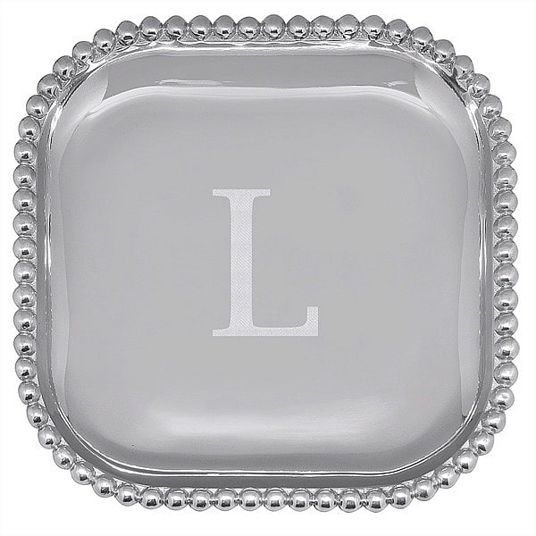 Product Details Mariposa® The original PEARLED 10in SQUARE PLATTER Engraved -L- by Mariposa® — The "L" Engraved PEARLED PLATTER designed by Michael Updike and hand-crafted by Mariposa. People love the Mariposa casual, sculpted elegance paired with their strong, virtually carefree material. Their artisan handcrafted look in recycled aluminum is both pleasing to the eye and touch, as well as 100% ecologically sound. Important Note: Mariposa items are hand engraved. Your piece may differ slightly from the photo. To see all monograms of this platter, click : "Pearled 10in platters - all letters" SendAFrame stocks the entire Mariposa® picture frame line - and related Brand and Design styled items like this Monogram engraved platter. To start - or add to your collection, click: Mariposa® Design Collection Product Care: Mariposa metals are handcrafted from 100% recycled aluminum Buffed until brilliant All items are food-safe and will not tarnish Handwash in warm water with mild soap and towel dry immediately Do not place in dishwasher or microwave Avoid extended contact with water, salty or acidic foods; coat lightly with vegetable oil or spray to avoid staining Warm to 350 degrees for hot foods. Freeze or chill for summer entertaining Cutting directly on the metal surface will scratch the finish Occasional use of non-abrasive metal polish will revive luster Leaving other metals on metal surfaces may cause discoloration The original PEARLED 10in SQUARE PLATTER Engraved -L- by Mariposa® Mariposa® FALL CELEBRATION Savings - Buy More / Save More * Add this item to your cart for the full details of this promotion. Conditions may apply. Model #808813158877 $120.00 This item is currently out of stock and we do not have an expected date at the present time. click here to be automatically notified when it comes back in stock or email merchandising@sendaframe.com for availability information. You can place this item in your shopping cart. It will be added to the 'saved for later' section. Your Price Match is Active Your request for a price of $0.00 for a minimum quantity of has been accepted. You have [time] left to purchase this item for $0.00 instead of $120.00 each. Find a Lower Price? We BEAT All Authorized Retailers [?] Approx. Overall Dimensions:10 1/2"x10 1/2" This item ships in its own box SHARE THIS ITEM Share on Facebook