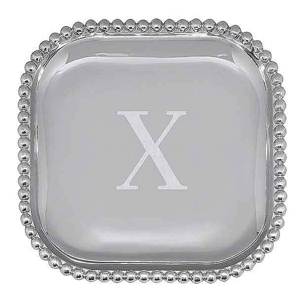 Product Details Mariposa® The original PEARLED 10in SQUARE PLATTER Engraved -X- by Mariposa® — The "X" Engraved PEARLED PLATTER, hand-crafted by Mariposa. People love the Mariposa casual, sculpted elegance paired with their strong, virtually carefree material. Their artisan handcrafted look in recycled aluminum is both pleasing to the eye and touch, as well as 100% ecologically sound. Important Note: Mariposa items are hand engraved. Your piece may differ slightly from the photo. To see all monograms of this platter, click : "Pearled 10in platters - all letters" SendAFrame stocks the entire Mariposa® picture frame line - and related Brand and Design styled items like this Monogram engraved platter. To start - or add to your collection, click: Mariposa® Design Collection Product Care: Mariposa metals are handcrafted from 100% recycled aluminum Buffed until brilliant All items are food-safe and will not tarnish Handwash in warm water with mild soap and towel dry immediately Do not place in dishwasher or microwave Avoid extended contact with water, salty or acidic foods; coat lightly with vegetable oil or spray to avoid staining Warm to 350 degrees for hot foods. Freeze or chill for summer entertaining Cutting directly on the metal surface will scratch the finish Occasional use of non-abrasive metal polish will revive luster Leaving other metals on metal surfaces may cause discoloration The original PEARLED 10in SQUARE PLATTER Engraved -X- by Mariposa® Mariposa® FALL CELEBRATION Savings - Buy More / Save More * Add this item to your cart for the full details of this promotion. Conditions may apply. Model #808813158990 $120.00 This item is currently out of stock and we do not have an expected date at the present time. click here to be automatically notified when it comes back in stock or email merchandising@sendaframe.com for availability information. You can place this item in your shopping cart. It will be added to the 'saved for later' section. Your Price Match is Active Your request for a price of $0.00 for a minimum quantity of has been accepted. You have [time] left to purchase this item for $0.00 instead of $120.00 each. Find a Lower Price? We BEAT All Authorized Retailers [?] Approx. Overall Dimensions:10 1/2"x10 1/2" This item ships in its own box SHARE THIS ITEM Share on Facebook