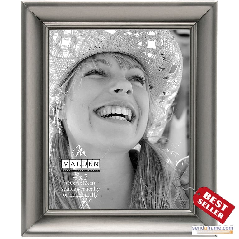 Main view Angled addl view Product Details Malden Designs® Pewter CONCOURSE classic 4x5 frame — Malden's pewter design is a pretty alternative to the polished, silver look.Nicely finished with a bit of a smoke patina, the 'concourse' group features a concave ridged moulding and glare resistant glass lens. Black velvet slide-in back has a dual function easel for landscape or portrait tabletop display.Moulding width is 11/16".By Malden Design®. Pewter CONCOURSE classic 4x5 frame Model #096287192453 List $12.50 You pay $9.95 In stock Ships next business day [?] Your Price Match is Active Your request for a price of $0.00 for a minimum quantity of has been accepted. You have [time] left to purchase this item for $0.00 instead of $9.95 each. Find a Lower Price? We BEAT All Authorized Retailers [?] FEATURESDisplays:4"x5"Material:Pewter (plate)Finish:Gray/Charcoal, SilverOccasion:Baby shower, Birthday, Business & office, Corporate gifts, Friendship, Get well, Good luck, Grandparent`s Day, Home decorating, Housewarming, Teacher gifts, Team & coach gifts, Thank-Motivate-Reward, Weekend Host GiftsStyle:Classic, Contemporary, TraditionalOrientation:BothBrand:Malden Designs®Display Type:Tabletop (or wall w/optional hanger - available separately) This item ships in its own box SHARE THIS ITEM Share on Facebook
