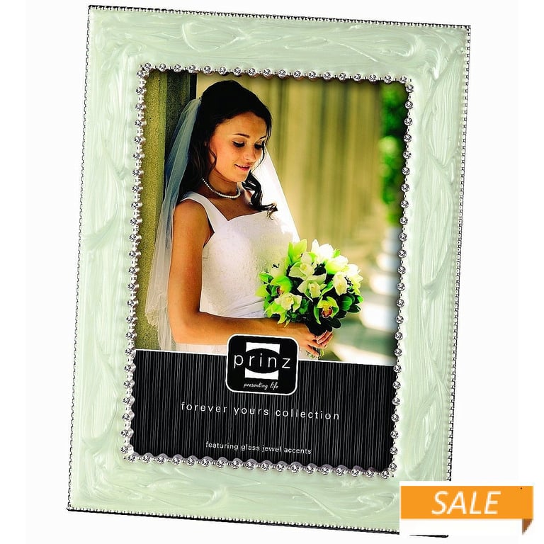 Product Details Prinz® frames & albums FELICITY jeweled ivory enamel frame by Prinz® — Exquisitely crafted in silver plating with an ivory enamel inlay this beautifully designed frame is perfect for any décor. The style and jewel detail of this frame creates an ideal setting to display the moments that make life exceptional.Features a velvet two-way easel back for vertical or horizontal table-top display. Or use the included hooks for easy wall mounting. Glare resistant glass lens.By Prinz®. FELICITY jeweled ivory enamel frame by Prinz® Model #81747752 List $30.00 You pay $14.90 In stock Ships next business day [?] Your Price Match is Active Your request for a price of $0.00 for a minimum quantity of has been accepted. You have [time] left to purchase this item for $0.00 instead of $14.90 each. Find a Lower Price? We BEAT All Authorized Retailers [?] FEATURESDisplays:5"x7"Material:EnamelFinish:GreenOccasion:Anniversary, Engagement, Friendship, Romantic, Valentine`s Day, WeddingStyle:Classic, Romantic, TraditionalOrientation:BothBrand:Prinz® frames & albums This item ships in its own box SHARE THIS ITEM Share on Facebook