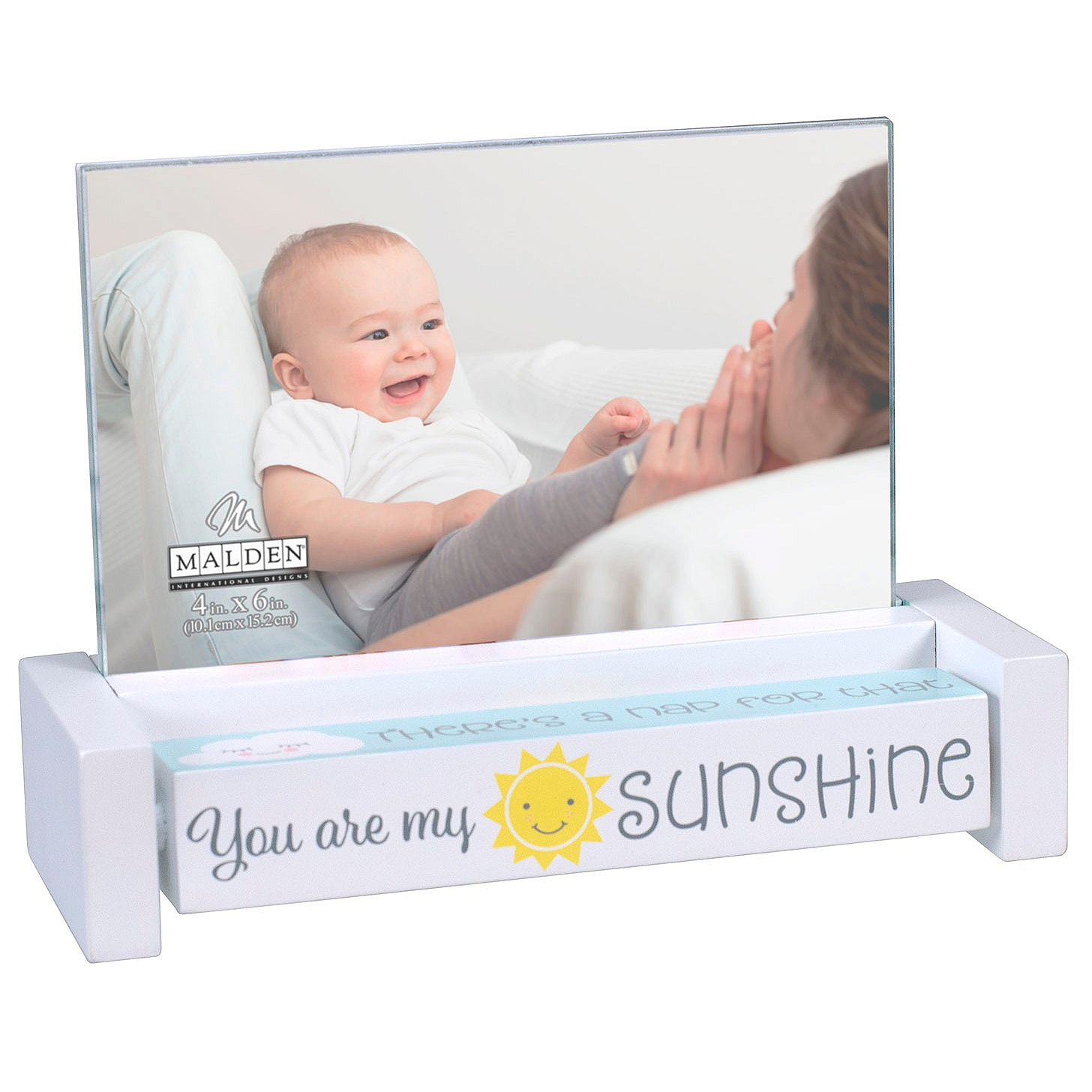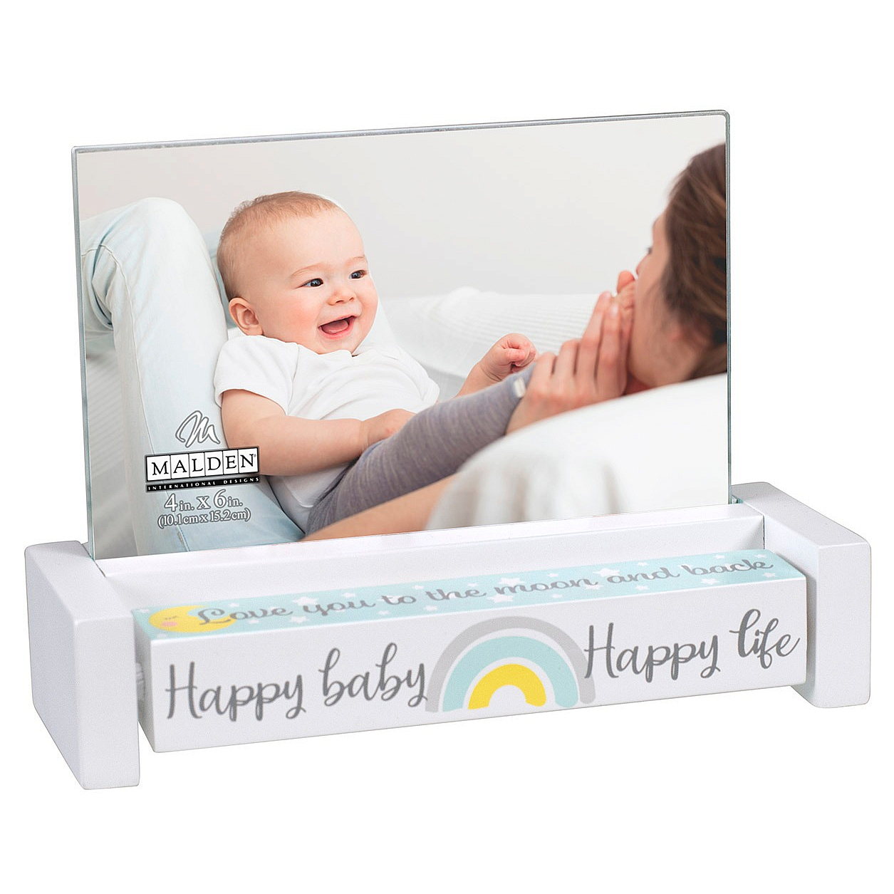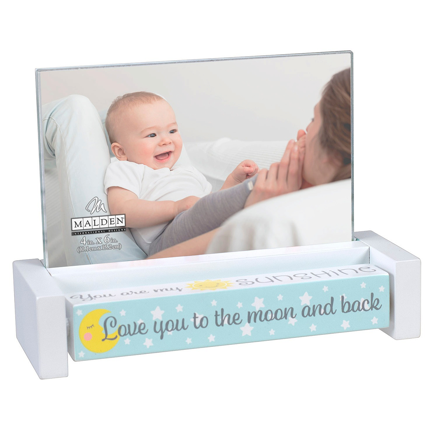 Main view Product Details Malden Designs® BABY SPIN QUOTES 4x6 frame — Celebrate the new BABY with this special spin-quote frame. Love you to the moon and back You are my sunshine There's a nap for that Happy baby ... Happy life A unique desktop gift waiting for your special baby frame. This novelty frame is produced by Malden USA®. BABY SPIN QUOTES 4x6 frame Malden Designs® FALL CELEBRATION Savings - ends SundayBuy More / Save More * Add this item to your cart for the full details of this promotion. Conditions may apply. Model #87169882 List $18.00 You pay $7.90 In stock Ships next business day [?] Your Price Match is Active Your request for a price of $0.00 for a minimum quantity of has been accepted. You have [time] left to purchase this item for $0.00 instead of $7.90 each. Find a Lower Price? We BEAT All Authorized Retailers [?] FEATURESDisplays:4"x6"Material:Wood (mdf/engineered)Finish:Turquoise, WhiteOccasion:Baby shower, Grandparent`s Day, New babyStyle:Contemporary, Words & whimsy, Expressions > ready madeOrientation:Horizontal OnlyBrand:Malden Designs®Display Type:Desktop Only Approx. Overall Dimensions:7"x5 1/4"x2 1/2" This item ships in its own box SHARE THIS ITEM Share on Facebook
