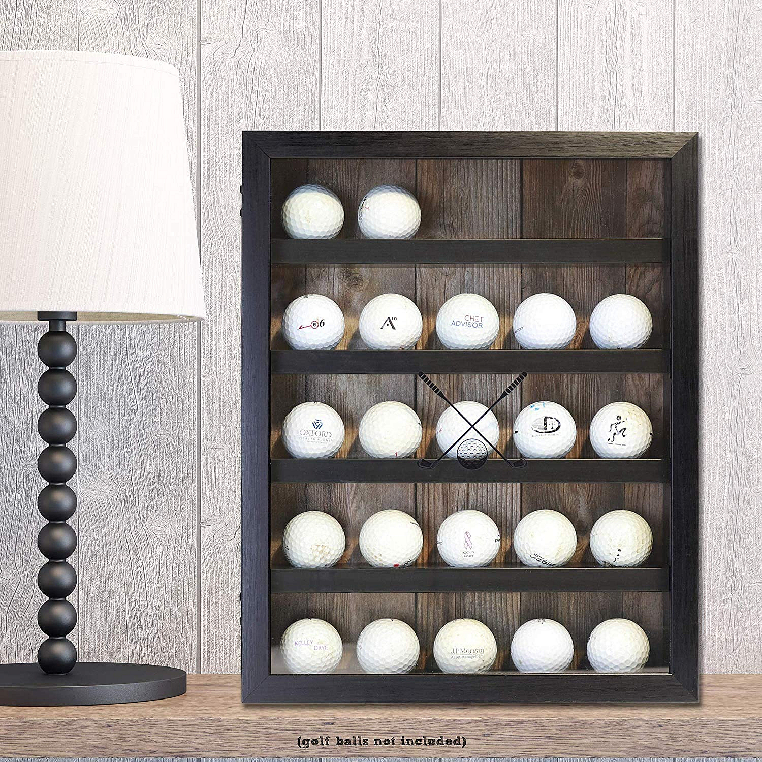 Decorative and functional high quality black wood grain composite shadow box golf ball display case.