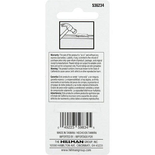 Back to results Scroll Items 8649 of 11382 Main view Product Details OOK® Hanger Hardware OOK® READYNAIL SAWTOOTH Hanger Pack (2 per pack) — Don't hassle with small hardware pieces anymore. Hillman's sawtooth hangers are designed for easy installation. Simply, place in desired location and press. Great for wooden frames. Hangers are self-leveling. Perfect for frames that do not come with hanging hardware Great for converting tabletop frames to wall frames 2 sawtooth hangers per package Important Note: This item may ONLY be ordered with READY-MADE frames. Please do not include on any other order. OOK® is America's most popular brand of art hanging hardware. To shop the complete inventory of OOK styles, click: OOK® Hanging Hardware Here's Norma Vally for the OOKS line of ready-nail hangers "How to Hang Art": OOK® READYNAIL SAWTOOTH Hanger Pack (2 per pack) Model #23598345 List $4.00 You pay $2.95 This item can be expected to ship by 11/24/2025. Order now by clicking ADD TO CART (below); you are only charged when we actually ship. Or, Click here to be automatically notified when it comes back in stock. Your Price Match is Active Your request for a price of $0.00 for a minimum quantity of has been accepted. You have [time] left to purchase this item for $0.00 instead of $2.95 each. Find a Lower Price? We BEAT All Authorized Retailers [?] FEATURESMaterial:Metallic (all)Finish:GoldOccasion:Business & office, Home decoratingStyle:ArchitecturalBrand:OOK® Hanger HardwareDisplay Type:not applicable n/a SHARE THIS ITEM Share on Facebook