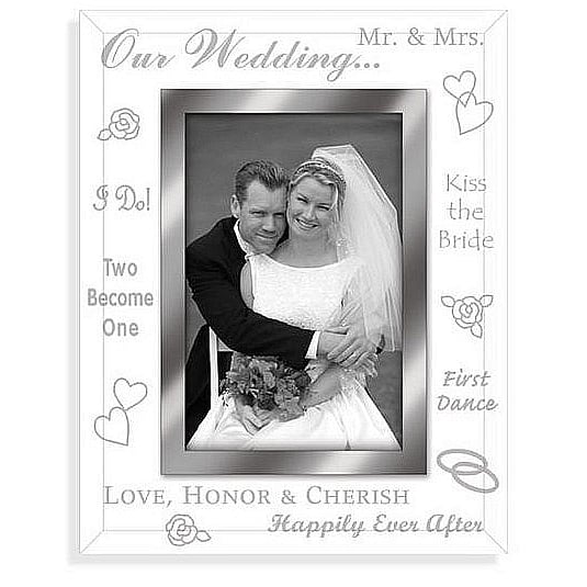 Product Details Malden Designs® Clear Expressions WEDDING DAY personalized glass keepsake — OUR WEDDING Two Become One - I DO! Love, Honor & Cherish First Dance - Kiss the Bride Mr. & Mrs. - Happily Ever After Celebrate your love with our Clear Expressions WEDDING DAY glass picture frame.Bevelled to create a very attractive desk piece.Nice hardboard backing. Glare resistant glass lens.Crafted expressly for SendAFrame. Clear Expressions WEDDING DAY personalized glass keepsake Model #096287683449 $9.00 only 1 left, order soon. In stock Ships next business day [?] Your Price Match is Active Your request for a price of $0.00 for a minimum quantity of has been accepted. You have [time] left to purchase this item for $0.00 instead of $9.00 each. Find a Lower Price? We BEAT All Authorized Retailers [?] FEATURESDisplays:4"x6"Material:GlassFinish:ClearOccasion:Engagement, Wedding, Valentine`s DayStyle:Classic, Contemporary, Romantic, Teens & tweens, Words & whimsy, Sentiments | ready madeOrientation:Vertical OnlyBrand:Malden Designs®Display Type:Desktop Only This item ships in its own box SHARE THIS ITEM Share on Facebook