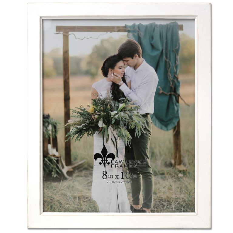 Main view Product Details Lawrence Frames® ABBEY WHITE 8x10 frame by Lawrence — A quality, traditional white wood frame. Lightly weathered finish; flat top profile. Display your print or photo vertically or horizontally with dual back easel - or with included wall mount. Glare resistant glass lens; quality hardboard backing. By Lawrence Frames®, crafting fine frames for generations. ABBEY WHITE 8x10 frame by Lawrence Model #751148080750 List $22.50 You pay $17.95 This item IS in stock and can be expected to ship 01/30/2026 In stock Your Price Match is Active Your request for a price of $0.00 for a minimum quantity of has been accepted. You have [time] left to purchase this item for $0.00 instead of $17.95 each. Find a Lower Price? We BEAT All Authorized Retailers [?] FEATURESDisplays:8"x10"Material:Wood (full grain)Finish:WhiteOccasion:Business & office, Home decorating, Housewarming, Weekend Host GiftsStyle:Distressed - Weathered, Rustic/Lodge, Shabby ChicOrientation:BothBrand:Lawrence Frames®Display Type:Desktop or Wall This item ships in its own box SHARE THIS ITEM Share on Facebook