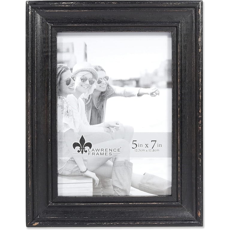 Main view Product Details Lawrence Frames® Weathered DURHAM BLACK WOOD frame by Lawrence® — Wonderfully unique weathered Black wood picture frame. Each frame is hand finished and weathered which gives this frame a casual and rich look. Included glass to protect your photo. Includes a quality black easel back which stands both vertically and horizontally. Wall mounts included for easy hanging. Individually boxed. By Lawrence® Weathered DURHAM BLACK WOOD frame by Lawrence® Model #48074322 List $18.00 You pay $12.95 This item IS in stock and can be expected to ship 11/12/2025 Your Price Match is Active Your request for a price of $0.00 for a minimum quantity of has been accepted. You have [time] left to purchase this item for $0.00 instead of $12.95 each. Find a Lower Price? We BEAT All Authorized Retailers [?] FEATURESDisplays:5"x7"Material:Wood (full grain)Finish:BlackOccasion:Business & office, Home decorating, Housewarming, Weekend Host GiftsStyle:Antique, Coastal, Distressed - Weathered, Rustic/LodgeOrientation:BothBrand:Lawrence Frames®Display Type:Desktop or Wall Approx. Overall Dimensions:7"x9"x1" This item ships in its own box SHARE THIS ITEM Share on Facebook