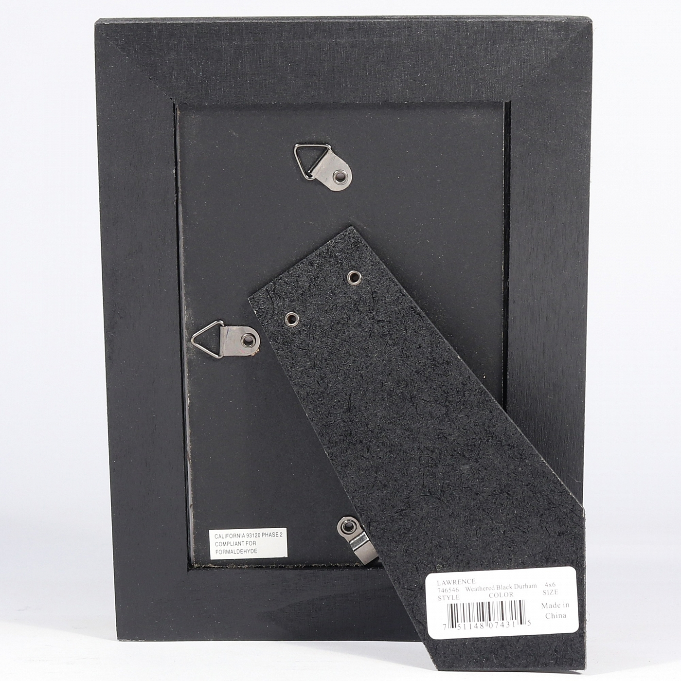 Back to results Scroll Items 3213 of 11332 Family Members 4"x6" - DURHAM WEATHERED Black $11.95 8"x10" - DURHAM WEATHERED Black $17.95 Main view Product Details Lawrence Frames® Weathered DURHAM BLACK WOOD frame by Lawrence® — Wonderfully unique weathered Black wood picture frame. Each frame is hand finished and weathered which gives this frame a casual and rich look. Included glass to protect your photo. Includes a quality black easel back which stands both vertically and horizontally. Wall mounts included for easy hanging. Individually boxed. By Lawrence® Weathered DURHAM BLACK WOOD frame by Lawrence® Model #48074322 List $18.00 You pay $12.95 This item IS in stock and can be expected to ship 11/12/2025 Your Price Match is Active Your request for a price of $0.00 for a minimum quantity of has been accepted. You have [time] left to purchase this item for $0.00 instead of $12.95 each. Find a Lower Price? We BEAT All Authorized Retailers [?] FEATURESDisplays:5"x7"Material:Wood (full grain)Finish:BlackOccasion:Business & office, Home decorating, Housewarming, Weekend Host GiftsStyle:Antique, Coastal, Distressed - Weathered, Rustic/LodgeOrientation:BothBrand:Lawrence Frames®Display Type:Desktop or Wall Approx. Overall Dimensions:7"x9"x1" This item ships in its own box SHARE THIS ITEM Share on Facebook