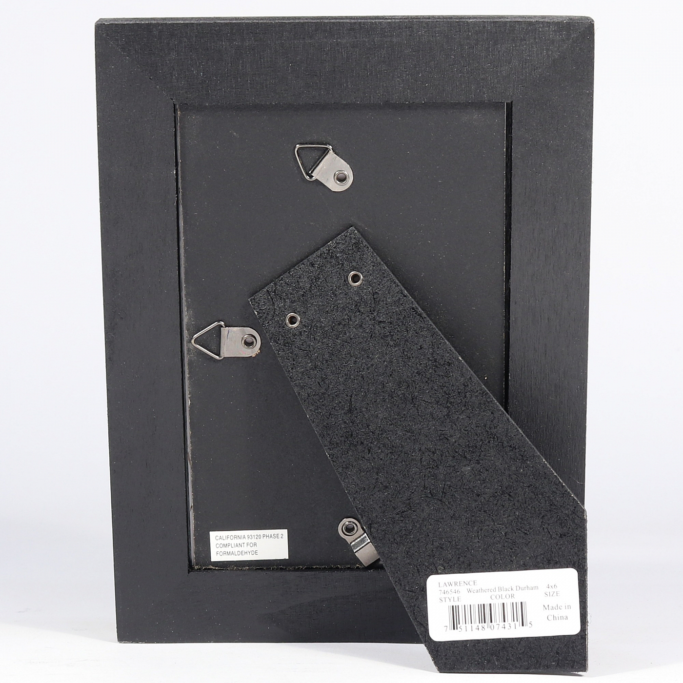 Main view Product Details Lawrence Frames® Weathered DURHAM BLACK WOOD 8x10 frame by Lawrence® — Wonderfully unique weathered Black wood picture frame. Each frame is hand finished and weathered which gives this frame a casual and rich look. Included glass protects your photo. Quality black easel back which stands both vertically and horizontally. Wall mounts included for easy hanging. Individually boxed. By Lawrence® Weathered DURHAM BLACK WOOD 8x10 frame by Lawrence® Model #48074339 List $24.50 You pay $17.95 This item IS in stock and can be expected to ship 11/12/2025 Your Price Match is Active Your request for a price of $0.00 for a minimum quantity of has been accepted. You have [time] left to purchase this item for $0.00 instead of $17.95 each. Find a Lower Price? We BEAT All Authorized Retailers [?] FEATURESDisplays:8"x10"Material:Wood (full grain)Finish:BlackOccasion:Business & office, Home decorating, Housewarming, Weekend Host GiftsStyle:Antique, Coastal, Distressed - Weathered, Rustic/LodgeOrientation:BothBrand:Lawrence Frames®Display Type:Desktop or Wall Approx. Overall Dimensions:10"x12"x1" This item ships in its own box SHARE THIS ITEM Share on Facebook
