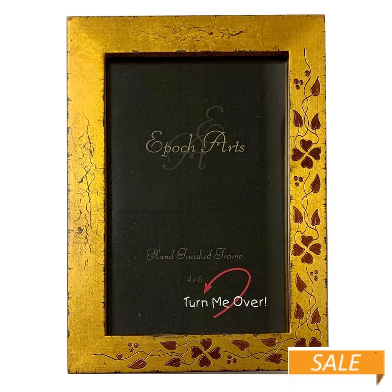 Main view sample Instructions Product Details Epoch Art™ Retro PASSIONE AGED GOLD by Epoch Arts® — Epoch Arts® offers a wonderful reproduction of a period frame in their PASSIONE AGED GOLD style.Hand crafted from choice woods with a stenciled accent and crackled finish.Both back and front are beautifully polished and golden stained for lasting beauty. Glare resistant glass lens. The patented adjustable easel back snaps in place where you want your frame to sit.Please click Item Views links in the upper-center of this page. The back is as beautiful as the front! To view the complete collection, click: Epoch Arts® Classic Reproductions PASSIONE AGED GOLD by Epoch Arts® Model #816558009149 List $65.00 You pay $31.90 In stock Ships next business day [?] Your Price Match is Active Your request for a price of $0.00 for a minimum quantity of has been accepted. You have [time] left to purchase this item for $0.00 instead of $31.90 each. Find a Lower Price? We BEAT All Authorized Retailers [?] FEATURESDisplays:8"x10"Material:Wood (full grain)Finish:GoldOccasion:Home decoratingStyle:Antique, Rustic/Lodge, Traditional, Distressed - WeatheredOrientation:BothBrand:Epoch Art™ RetroDisplay Type:Desktop or Wall This item ships in its own box SHARE THIS ITEM Share on Facebook