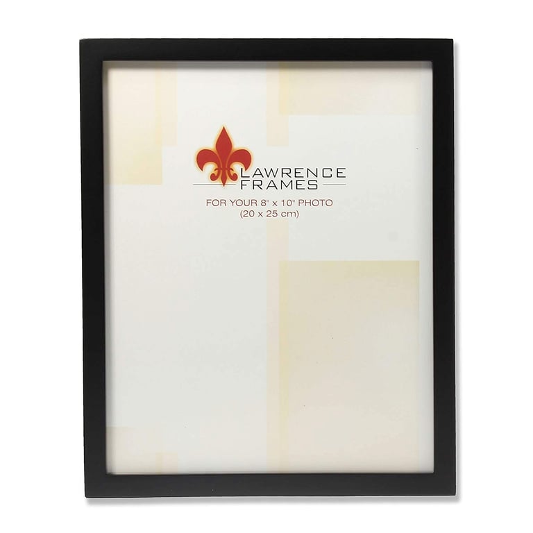 Main view Product Details Lawrence Frames® Classic Black SQUARE CORNER style 8x10 frame by Lawrence Frames® — Lovely, solid black ebony frame is elegant and an easy style to decorate with.Often used for gallery presentations, this series is constructed of matched varnished grained hardwoods with tailed corners.Dual easel for landscape or portrait tabletop use; recessed wall mounting hooks included for easy hanging. Glare resistant glass lens. Moulding edge is ½" wide.By Lawrence®, fine frames for generations. Classic Black SQUARE CORNER style 8x10 frame by Lawrence Frames® Lawrence® HOLIDAY CELEBRATION Savings: Buy More / Save More * Add this item to your cart for the full details of this promotion. Conditions may apply. Model #751148055598 List $24.50 You pay $20.95 In stock Ships next business day [?] Your Price Match is Active Your request for a price of $0.00 for a minimum quantity of has been accepted. You have [time] left to purchase this item for $0.00 instead of $20.95 each. Find a Lower Price? We BEAT All Authorized Retailers [?] FEATURESDisplays:8"x10"Material:Wood (full grain)Finish:BlackOccasion:Business & office, Home decoratingStyle:Classic, Architectural, MinimalOrientation:BothBrand:Lawrence Frames®Display Type:Desktop or Wall Approx. Overall Dimensions:8 5/8"x10 5/8"x11/16" This item ships in its own box SHARE THIS ITEM Share on Facebook