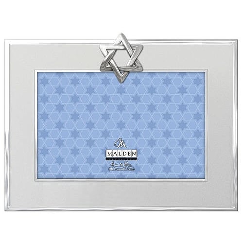 Product Details Malden Designs® STAR OF DAVID Silverplate 6x4 frame — Celebrate a Bar/Bat Mitzvah, Chanukah - or any loving Judaica event - with this special STAR of DAVID frame. Add a great photo and you have a priceless gift for your friend or loved one. Expert engraving available. Glare resistant glass lens. Easel back for tabletop display. By Malden Design®. STAR OF DAVID Silverplate 6x4 frame Malden Designs® FALL CELEBRATION Savings - ends SundayBuy More / Save More * Add this item to your cart for the full details of this promotion. Conditions may apply. Model #87140652 List $24.50 You pay $19.95 In stock Ships next business day [?] Your Price Match is Active Your request for a price of $0.00 for a minimum quantity of has been accepted. You have [time] left to purchase this item for $0.00 instead of $19.95 each. Find a Lower Price? We BEAT All Authorized Retailers [?] FEATURESDisplays:4"x6"Material:Metallic (all)Finish:SilverOccasion:Bar & Bat Mitzvah, HanukkahStyle:Sports & leisure, Words & whimsy, Expressions > ready made, JudaicaOrientation:Horizontal OnlyBrand:Malden Designs®Display Type:Tabletop (or wall w/optional hanger - available separately) Approx. Overall Dimensions:8 1/8"x6"x5/8" This item ships in its own box SHARE THIS ITEM Share on Facebook