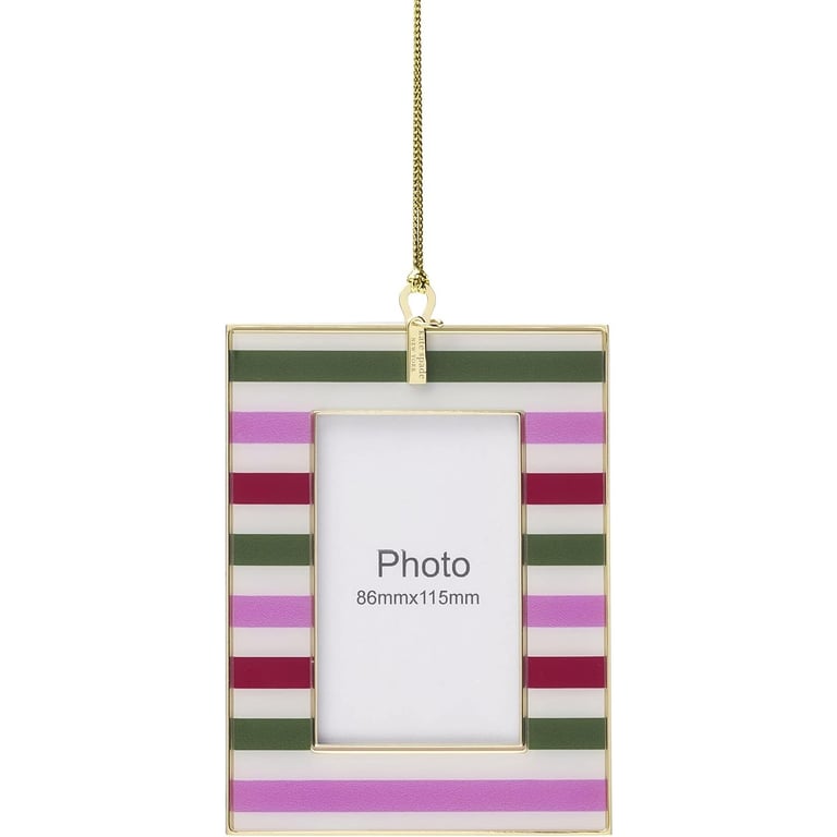 Main view Product Details Lenox® STRIPED 2x3 mini frame ornament BE JOLLY by kate spade new york — From kate spade new york's Be Jolly 2025 collection Made of stainless steel and enamelware Features a gold cord for hanging Detachable hang tag Measures 5"H x 3.5"L Displays a 3"H x 2"L photo SendAFrame carries the entire kate spade® photo collection. Visit: kate spade® Collection STRIPED 2x3 mini frame ornament BE JOLLY by kate spade new york Model #882864872302 $27.50 2 available to ship, more on the way. In stock Ships next business day [?] Your Price Match is Active Your request for a price of $0.00 for a minimum quantity of has been accepted. You have [time] left to purchase this item for $0.00 instead of $27.50 each. Find a Lower Price? We BEAT All Authorized Retailers [?] Approx. Overall Dimensions:3 1/2"x5" This item ships in its own box SHARE THIS ITEM Share on Facebook
