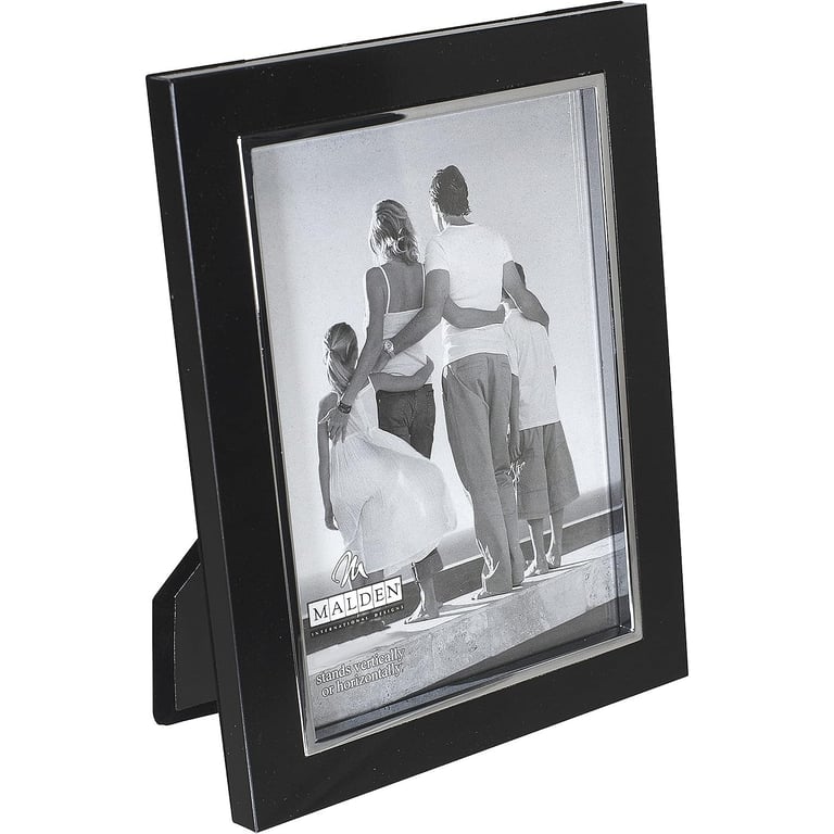Main view addl view Product Details Malden Designs® UPTOWN stylized black w/polished silver trim 8x10 frame by Malden® — A contrast of metallic tones makes this an interestingly fresh look on a tabletop.UPTOWN is a sophisticated look with ebony-black finish and a polished silverplated edge trim.Hardboard backed with dual easel for portrait or landscape display. Glare resistant glass lens. Moulding width is 1/2".Crafted by Malden Designs®, maker of fine frames for generations. UPTOWN stylized black w/polished silver trim 8x10 frame by Malden® Malden Designs® HOLIDAY CELEBRATION Savings - ends SundayBuy More / Save More * Add this item to your cart for the full details of this promotion. Conditions may apply. Model #096287905985 List $27.50 You pay $20.95 In stock Ships next business day [?] Your Price Match is Active Your request for a price of $0.00 for a minimum quantity of has been accepted. You have [time] left to purchase this item for $0.00 instead of $20.95 each. Find a Lower Price? We BEAT All Authorized Retailers [?] FEATURESDisplays:8"x10"Material:Metallic (all)Finish:Black, SilverOccasion:Group Events + Parties, Home decorating, Housewarming, Mother`s Day, Teacher gifts, Team & coach gifts, Thank-Motivate-Reward, Celebrating TravelsStyle:Contemporary, Art Deco, SophisticatedOrientation:BothBrand:Malden Designs® Approx. Overall Dimensions:9 1/4"x11 1/4"x1" This item ships in its own box SHARE THIS ITEM Share on Facebook