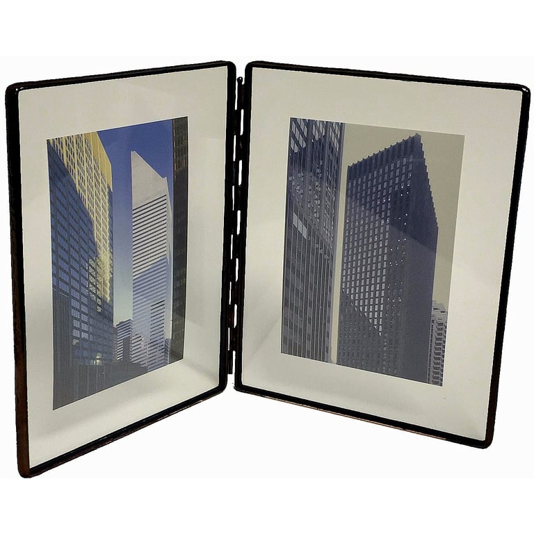 Bedford Downing frames consist of two paralleled pieces of glass soldered together and rested in its unique, coordinated, glass stand. A tiny round sliver coil spring holds the photo(s) in position with tension.