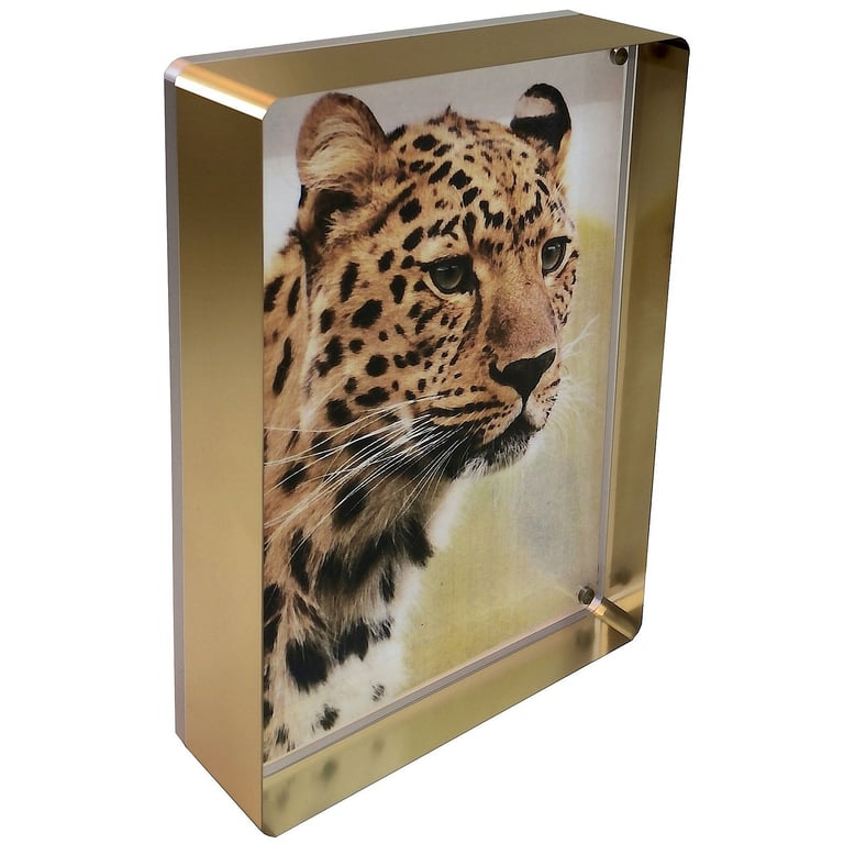 Crystal clear acrylic panels held together by tiny magnets work like all their other frames. But now the front acrylic panel is extra thick and the back one is thin. Thanks to this unique design, the result makes your image have a POP look in 3-D.