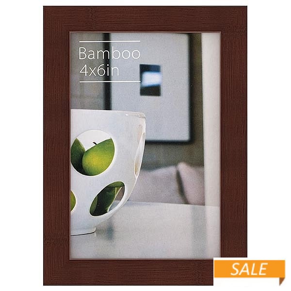 Main view Detail Product Details Nielsen · Bainbridge® CONTEMPORARY Bamboo Mocha-Brown stain frame by EcoCare® — Produced from renewable resources, the CONTEMPORARY series is 100% natural bamboo in a flat-top profile.Water-based mocha-brown stain with a unique natural grain has a particularly attactive look and feel.Dual easel for portrait or landscape table-top display. Acid-free backing for life-time care of your print. Glare resistant, UV glazed glass lens. Crafted by EcoCare®, a division of Nielsen-Bainbridge®. SendAFrame stocks the complete line of Nielsen-Bainbridge ready-made frames to make your projects easy. Click here to view the entire Nielsen® line. CONTEMPORARY Bamboo Mocha-Brown stain frame by EcoCare® Model #087828303452 List $16.50 You pay $8.90 In stock Ships next business day [?] Your Price Match is Active Your request for a price of $0.00 for a minimum quantity of has been accepted. You have [time] left to purchase this item for $0.00 instead of $8.90 each. Find a Lower Price? We BEAT All Authorized Retailers [?] FEATURESDisplays:4"x6"Material:Wood (full grain)Finish:BrownOccasion:Bon voyage, Business & office, Home decorating, Teacher gifts, Team & coach gifts, Thank-Motivate-Reward, Celebrating TravelsStyle:Contemporary, Traditional, Eco-Friendly-RecycledOrientation:BothBrand:Nielsen · Bainbridge®Display Type:Desktop or Wall This item ships in its own box SHARE THIS ITEM Share on Facebook