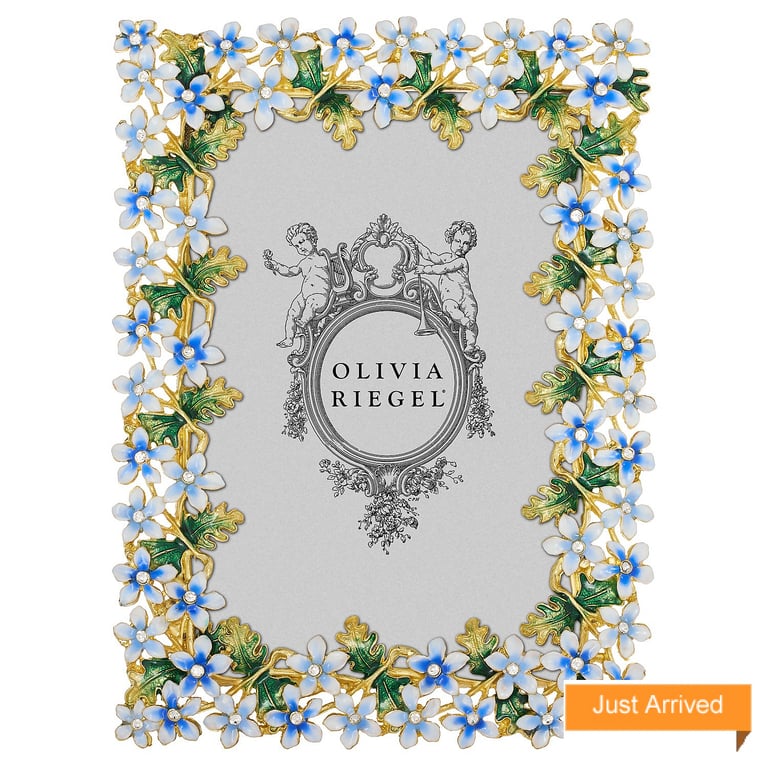 Main view Product Details Olivia Riegel DAPHNE Floral 4x6 Frame by Olivia Riegel® — Enchanting gold finished pewter floral pattern, hand-enameled in serene blue and green hues. Hand-set clear European crystals. Elegant champagne moiré silk back. Tarnish resistant. Signature luxury gift box included. An original design frame from the Olivia Riegel® collection. DAPHNE Floral 4x6 Frame by Olivia Riegel® OLIVIA RIEGEL® WINTER Savings- Buy More / Save More * Add this item to your cart for the full details of this promotion. Conditions may apply. Model #850066618141 $175.00 This item IS in stock and can be expected to ship 01/23/2026 Your Price Match is Active Your request for a price of $0.00 for a minimum quantity of has been accepted. You have [time] left to purchase this item for $0.00 instead of $175.00 each. Find a Lower Price? We BEAT All Authorized Retailers [?] FEATURESDisplays:4"x6"Material:Pewter (fine)Finish:Blue(Light), Gold, Green, WhiteOccasion:Anniversary, Engagement, Mother`s Day, Romantic, Valentine`s Day, WeddingStyle:Classic, Florals, Ornate, RomanticOrientation:BothBrand:Olivia RiegelDisplay Type:Desktop Only Approx. Overall Dimensions:5 1/2"x7 1/2" This item ships in its own box SHARE THIS ITEM Share on Facebook