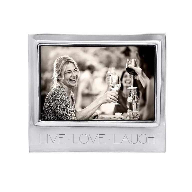 Main view Product Details Mariposa® LIVE LOVE LAUGH 6x4 SIGNATURE frame by Mariposa® — The SIGNATURE frame for 6"x4" photos engraved with the sentiment LIVE LOVE LAUGH Mariposa fine metallic decor is handcrafted from 100% recycled sandcast aluminum. Items will not tarnish If needed, handwash in warm water with mild soap and towel dry immediately Occasional use of non-abrasive metal polish will revive luster Important Note: Mariposa items are hand engraved. Your piece may differ slightly from the photo. Hint: If you would like this style customized with names, a date . . . use the blank model and have us engrave for you. LIVE LOVE LAUGH 6x4 SIGNATURE frame by Mariposa® Mariposa® HOLIDAY CELEBRATION Savings - Buy More / Save More * Add this item to your cart for the full details of this promotion. Conditions may apply. Model #808813178318 List $64.00 You pay $58.95 In stock Ships next business day [?] Your Price Match is Active Your request for a price of $0.00 for a minimum quantity of has been accepted. You have [time] left to purchase this item for $0.00 instead of $58.95 each. Find a Lower Price? We BEAT All Authorized Retailers [?] FEATURESDisplays:4"x6"Material:AluminumFinish:SilverOccasion:Anniversary, Birthday, Engagement, Good luck, Graduation, Inspirational, Romantic, Valentine`s Day, WeddingStyle:Contemporary, Santa Fe, Shabby Chic, Sophisticated, Eco-Friendly-Recycled, Words & whimsy, Sentiments | ready made, RomanticOrientation:Horizontal OnlyBrand:Mariposa®Display Type:Desktop Only Approx. Overall Dimensions:6 3/4"x5 3/4"x1" This item ships in its own box SHARE THIS ITEM Share on Facebook