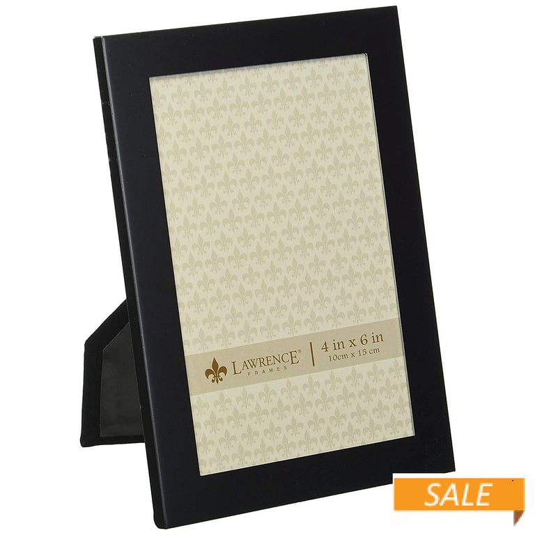 Main view Product Details Lawrence Frames® Black aluminum 4x6 frame in a simple silhouette — This simple black aluminum frame is simple and stylish. Moulding measures ½" wide.The attractive hardboard back features a dual easel for either portrait or landscape secure tabletop display. Glare resistant glass lens. Engraving available.Crafted by Lawrence®. Black aluminum 4x6 frame in a simple silhouette Model #751148040679 List $15.00 You pay $6.90 This item IS in stock and can be expected to ship 01/21/2026 In stock Your Price Match is Active Your request for a price of $0.00 for a minimum quantity of has been accepted. You have [time] left to purchase this item for $0.00 instead of $6.90 each. Find a Lower Price? We BEAT All Authorized Retailers [?] FEATURESDisplays:4"x6"Material:AluminumFinish:BlackOccasion:Business & office, Employee honorsStyle:Classic, Contemporary, Traditional, MinimalOrientation:BothBrand:Lawrence Frames®Display Type:Tabletop (or wall w/optional hanger - available separately) Approx. Overall Dimensions:4 13/16"x6 13/16"x1/2" This item ships in its own box SHARE THIS ITEM Share on Facebook
