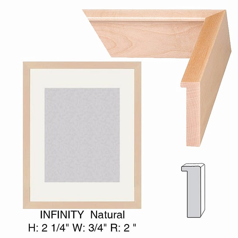The INFINITY collection styles are natural choices, finished in a clear, water based coating which highlights all of the natural variations and details of the wood. These are made in the USA mouldings: 100% homegrown FSC Certified sustainably harvested woods.