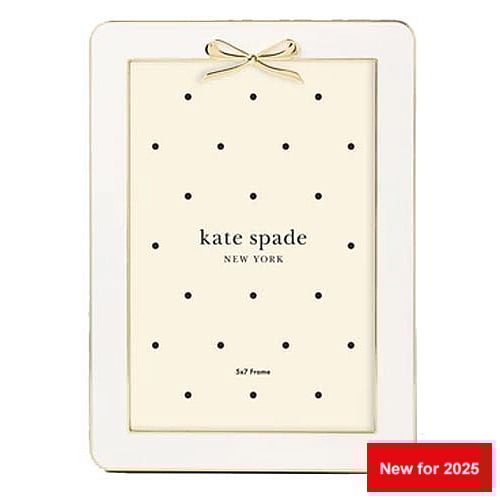 Main view Gift Box (samples) Product Details Lenox® HAPPILY EVER AFTER frame for 5x7 prints by kate spade new york® — The Happily Ever After picture frame from kate spade new york, topped with a picture-perfect gold metal bow, turns your cherished memories into a stylish showcase fit for a modern fairytale. Makes a stylish gift for the newlyweds. Crafted of goldplate and ivory enamel Holds a 5" x 7" photo SendAFrame proudly carries the entire kate spade® photo collection: kate spade® Collection HAPPILY EVER AFTER frame for 5x7 prints by kate spade new york® Model #882864872159 List $65.00 You pay $59.95 In stock Can be shipped today [?] Your Price Match is Active Your request for a price of $0.00 for a minimum quantity of has been accepted. You have [time] left to purchase this item for $0.00 instead of $59.95 each. Find a Lower Price? We BEAT All Authorized Retailers [?] FEATURESDisplays:5"x7"Material:EnamelFinish:Gold, Ivory/CreamOccasion:Anniversary, Engagement, Romantic, Valentine`s Day, WeddingStyle:Contemporary, Preppy, RomanticOrientation:Vertical OnlyBrand:Lenox®Display Type:Tabletop (or wall w/optional hanger - available separately) Approx. Overall Dimensions:7 1/2"x9 1/2" This item ships in its own box SHARE THIS ITEM Share on Facebook