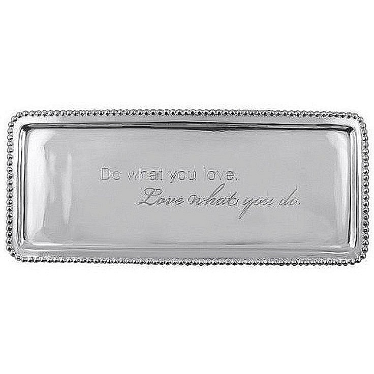 Main view Gift Packaging Product Details Mariposa® DO WHAT YOU LOVE ... Statement Tray (LONG) crafted by Mariposa® — Never has a sentiment been so tried ..."DO WHAT YOU LOVE .... LOVE WHAT YOU DO." Give this handcrafted, engraved tray as a gift to those you love and who love you. People love the Mariposa casual, sculpted elegance — a strong, virtually carefree material. Their artisan handcrafted look in recycled aluminum is both pleasing to the eye and touch, as well as 100% ecologically sound. SendAFrame stocks the entire Mariposa® picture frame line - and related Brand and Design styled items like this. Shop the entire collection: Mariposa® Design Collection Important Note: Mariposa items are hand engraved. Your piece may differ slightly from the photo. DO WHAT YOU LOVE ... Statement Tray (LONG) crafted by Mariposa® Mariposa® FALL CELEBRATION Savings - Buy More / Save More * Add this item to your cart for the full details of this promotion. Conditions may apply. Model #808813132679 $89.00 5 available to ship, more on the way. In stock Can be shipped today [?] Your Price Match is Active Your request for a price of $0.00 for a minimum quantity of has been accepted. You have [time] left to purchase this item for $0.00 instead of $89.00 each. Find a Lower Price? We BEAT All Authorized Retailers [?] Approx. Overall Dimensions:13 3/4"x5 3/4" This item ships in its own box SHARE THIS ITEM Share on Facebook