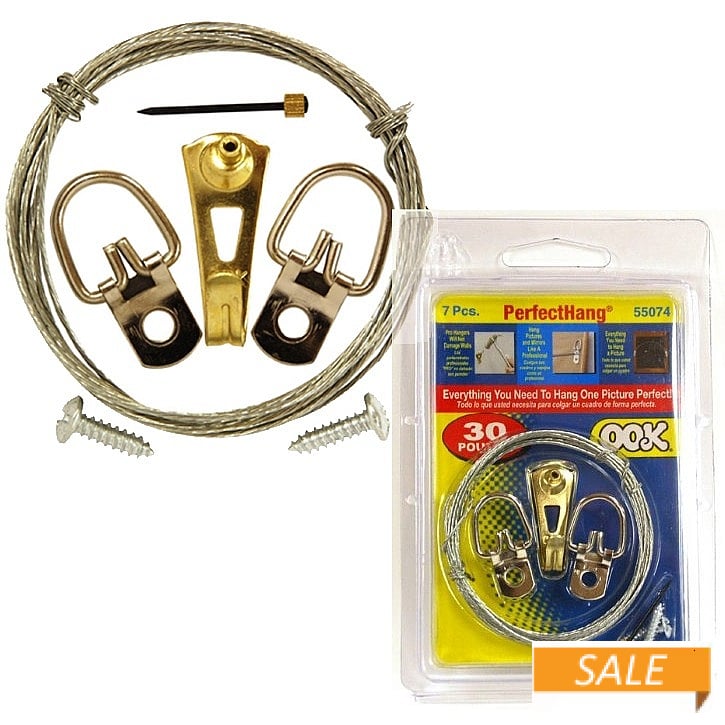 Here, the OOK 7-Piece Perfect Picture Hanging Kit is ideal for plaster and drywall surfaces and includes reusable nails that will not damage the wall. This kit includes the hardware required to hang 1 picture like a professional.
