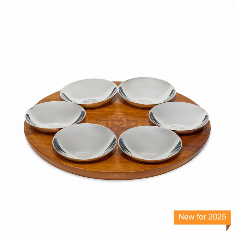 Main view Signature Gift Box (sample) Product Details Nambe THE UNITY SEDER PLATE crafted by Nambe® — Create a beautiful, memorable Passover Seder with this breathtaking MIKAELA DÖRFEL designed GEO Sedar Plate. Sleek, simple shapes and lines allow this unique piece to work in traditional or contemporary homes, and the straightforward presentation helps keep the emphasis on the symbolic items and the story that they help to tell. The GEO SEDER PLATE features a solid, substantial wood base with Nambe Metal Tray compartments (which lift right out for easy cleaning). Perfect in tarnish-resistant Nambé Alloy, with the luster of silver and the solidity of iron. A beloved treasure for any family, and a heartfelt gift for new families. Nambé Alloy + Wood Introduced 2025 Matches other Judaica pieces by Nambé Hand-wash only Ships in Nambe® signature gift box SendAFrame stocks the entire Nambe® picture frame line - and related Brand and Design styled items like this special Judaica item. click: Nambé® Design Collection. THE UNITY SEDER PLATE crafted by Nambe® Model #672275017085 $125.00 This item IS in stock and can be expected to ship 12/30/2025 Your Price Match is Active Your request for a price of $0.00 for a minimum quantity of has been accepted. You have [time] left to purchase this item for $0.00 instead of $125.00 each. Find a Lower Price? We BEAT All Authorized Retailers [?] FEATURESMaterial:Metallic (all)Finish:Brown, SilverOccasion:Anniversary, Bar & Bat Mitzvah, Birthday, Friendship, Good luck, Home decorating, Weekend Host Gifts, Housewarming, Inspirational, WeddingStyle:Contemporary, Santa Fe, Eco-Friendly-Recycled, Modern, Preppy, Distinctive, JudaicaBrand:NambeDisplay Type:not applicable n/a Approx. Overall Dimensions:13 1/2"x2"x9 1/2" This item ships in its own box SHARE THIS ITEM Share on Facebook