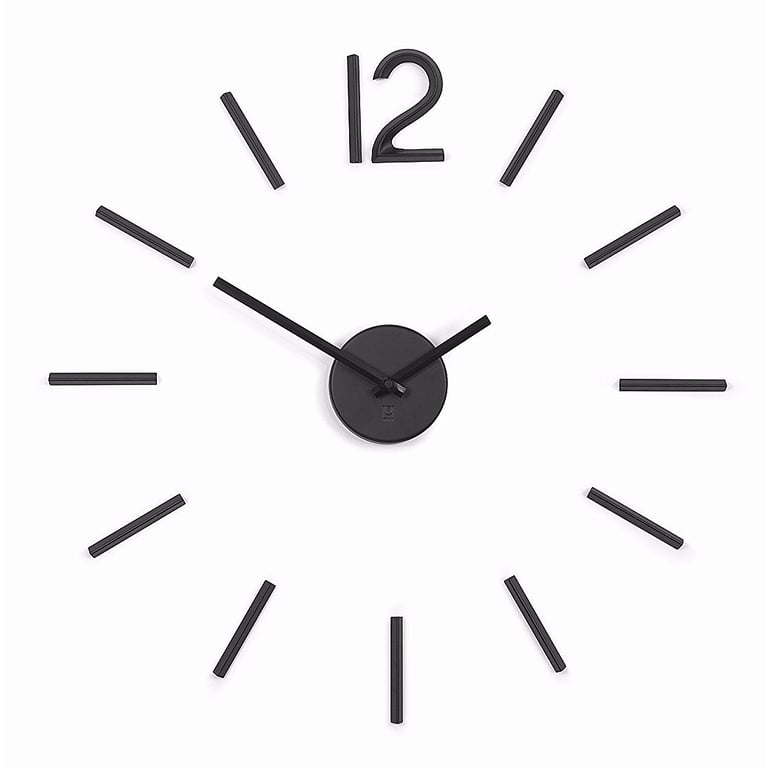 Use your wall space as the board to create your scalable clock. The BLINK WALL CLOCK by Umbra is a set of black metal indicators and '12' top number that mount to the wall with adhesives.