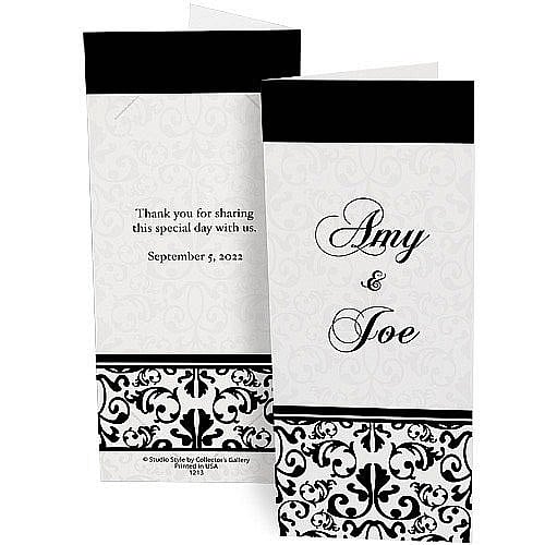 Product Details Collectors Gallery BROCADE Personalized Photo Strip holders for 2x6 Photobooth Prints — Photo booths are popular at weddings, sweet 16 parties, quinceaneras, bar/bat mitzvahs, graduations, anniversaries, family reunions, holiday parties, festivals, and corporate events. Give guests something to take their photo strips home in with a personalized folder. Choose from any of our customizable designs, or create a folder unique for your event. All designs are printed on smooth, lightweight 12 pt. paper stock and hold a classic 2" x 6" picture strip. Whether it's a party favor or a marketing piece for your company, photo booth folders make great event souvenirs. An inexpensive party favor Overall size measures 3" x 7" (when closed) Holds a 2" x 6" photo (for photobooth strips) Lightweight smooth finish paper Inside corner die-cuts hold picture in place Shipped flat, not folded FREE personalization included in the price Envelopes are not available Sold in increments of 10; minimum 100 folders. BROCADE Personalized Photo Strip holders for 2x6 Photobooth Prints Model #021352012138 $9.90 ( set of 10 / $0.99 ea ) This item can be expected to ship by 12/05/2025. Order now by clicking ADD TO CART (below); you are only charged when we actually ship. Or, Click here to be automatically notified when it comes back in stock. Your Price Match is Active Your request for a price of $0.00 for a minimum quantity of has been accepted. You have [time] left to purchase this item for $0.00 instead of $0.99 each. Find a Lower Price? We BEAT All Authorized Retailers [?] Approx. Overall Dimensions:3"x7" SHARE THIS ITEM Share on Facebook