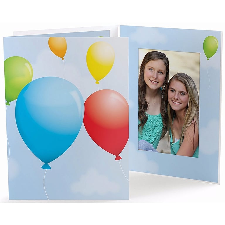 Main view Sizing Unfilled view Reverse Product Details Collectors Gallery Our Colorful PARTY BALLOONS 4x6 Photo Folder — Frame your photos and prints like a professional studio photographer with our adorable PARTY BALLOONS print folders. Lightweight smooth finish card stock Accommodates vertical 4" x 6" prints Picture opening measures 3-5/8" x 5-5/8" Price INCLUDES Personalizing (optional) Window border glued along top edge (bottom edge open) Printed design on front cover, back cover, and inside window border Lightweight, smooth finish paper Folders shipped flat, not folded Envelopes available separately (not required). See "Accessories" below. Folders are priced individually; Minimum 50. Made in the U.S.A. Our Colorful PARTY BALLOONS 4x6 Photo Folder Model #021352013036 $1.75 This item can be expected to ship by 02/24/2026. Order now by clicking ADD TO CART (below); you are only charged when we actually ship. Or, Click here to be automatically notified when it comes back in stock. Your Price Match is Active Your request for a price of $0.00 for a minimum quantity of has been accepted. You have [time] left to purchase this item for $0.00 instead of $1.75 each. Find a Lower Price? We BEAT All Authorized Retailers [?] FEATURESDisplays:4"x6"Material:Card-stockFinish:Blue, Multi-Color, Red, YellowOccasion:Birthday, Corporate gifts, Employee honors, Group Events + Parties, Sweet 16Style:Contemporary, Teens & tweens, Words & whimsyOrientation:Vertical OnlyDisplay Type:not applicable n/a Approx. Overall Dimensions:6 1/8"x8 3/8" SHARE THIS ITEM Share on Facebook