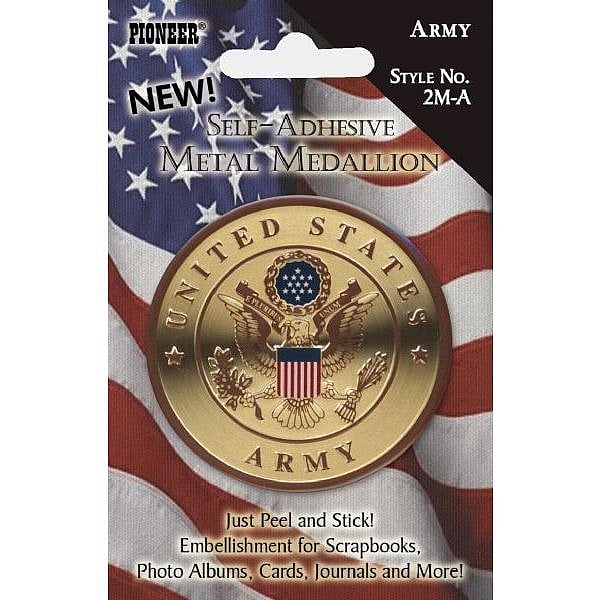 Main view Product Details Pioneer Albums® U.S. Army Permanent-stick Emblem personalizes your album — Show your pride on most any surface with our official United States Army emblem.Self-adhesive - just peel and stick!Each embossed Medallion is designed with great detail. These wonderful archival medallions are perfect embellishments for scrapbooks, cards, journals, and of course photo albums.Emblem measures 2" Ø. Made in America. U.S. Army Permanent-stick Emblem personalizes your album Model #023602621589 List $7.50 You pay $5.95 In stock Ships next business day [?] Your Price Match is Active Your request for a price of $0.00 for a minimum quantity of has been accepted. You have [time] left to purchase this item for $0.00 instead of $5.95 each. Find a Lower Price? We BEAT All Authorized Retailers [?] FEATURESMaterial:Acrylic | ResinFinish:Blue, Gold, Red, WhiteOccasion:Craft Projects, Military HonorsStyle:Classic, TraditionalBrand:Pioneer Albums®Display Type:not applicable n/a Approx. Overall Dimensions:2"x2" SHARE THIS ITEM Share on Facebook