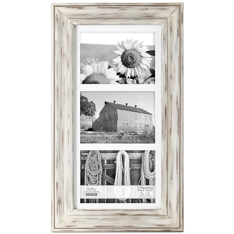Product Details Malden Designs® WHITMAN WHITE WASH matted triple 5x7 frame — Malden's white wash wood WHITMAN style is a flat-top, square cornered silhouette. Displays three (3) 5"x7" prints with its soft white mat professionally cut mat. Use the included mounts for easy wall hanging.Acid free backing for life-time care of your photo.Crafted by Malden Design®. WHITMAN WHITE WASH matted triple 5x7 frame Malden Designs® FALL CELEBRATION Savings - ends SundayBuy More / Save More * Add this item to your cart for the full details of this promotion. Conditions may apply. Model #87135504 List $31.00 You pay $26.95 In stock Can be shipped today [?] Your Price Match is Active Your request for a price of $0.00 for a minimum quantity of has been accepted. You have [time] left to purchase this item for $0.00 instead of $26.95 each. Find a Lower Price? We BEAT All Authorized Retailers [?] FEATURESDisplays:5"x7"Material:Wood (mdf/engineered)Finish:Ivory/Cream, WhiteOccasion:Business & office, Home decorating, Team & coach gifts, Thank-Motivate-Reward, Celebrating TravelsStyle:Architectural, Contemporary, Distressed - Weathered, Rustic/LodgeOrientation:BothBrand:Malden Designs®Display Type:Wall Only Approx. Overall Dimensions:14 3/4"x17 3/8"x1" This item ships in its own box SHARE THIS ITEM Share on Facebook