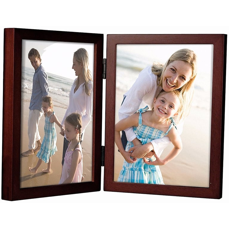 Product Details Malden Designs® Double Hinged Walnut CONCEPTS wood 5x7 frame by Malden® — We are pleased to offer our quality hinged line in a new 5"x7" double folding walnut-brown style.Very nicely crafted with select hardwoods, tailored corners and solid brass hinges.Frames have black hardboard backs with swivel locks. Wall mounts for easy hanging are also included on these pieces should you like a change of display options.Glare resistant glass lenses.Quality crafted by Malden®. To shop the collection, click Malden Design® Double Hinged Walnut CONCEPTS wood 5x7 frame by Malden® Model #096287127172 List $19.50 You pay $16.95 In stock Ships next business day [?] Your Price Match is Active Your request for a price of $0.00 for a minimum quantity of has been accepted. You have [time] left to purchase this item for $0.00 instead of $16.95 each. Find a Lower Price? We BEAT All Authorized Retailers [?] FEATURESDisplays:5"x7"Material:Wood (mdf/engineered)Finish:BrownOccasion:Birthday, Business & office, Friendship, Get well, Good luck, Grandparent`s Day, Retirement, Sweet 16, Teacher gifts, Team & coach gifts, Thank-Motivate-Reward, Celebrating TravelsStyle:Classic, Contemporary, TraditionalOrientation:Vertical OnlyBrand:Malden Designs®Display Type:Wall Only Approx. Overall Dimensions:13"x8 7/8"x7/8" This item ships in its own box SHARE THIS ITEM Share on Facebook
