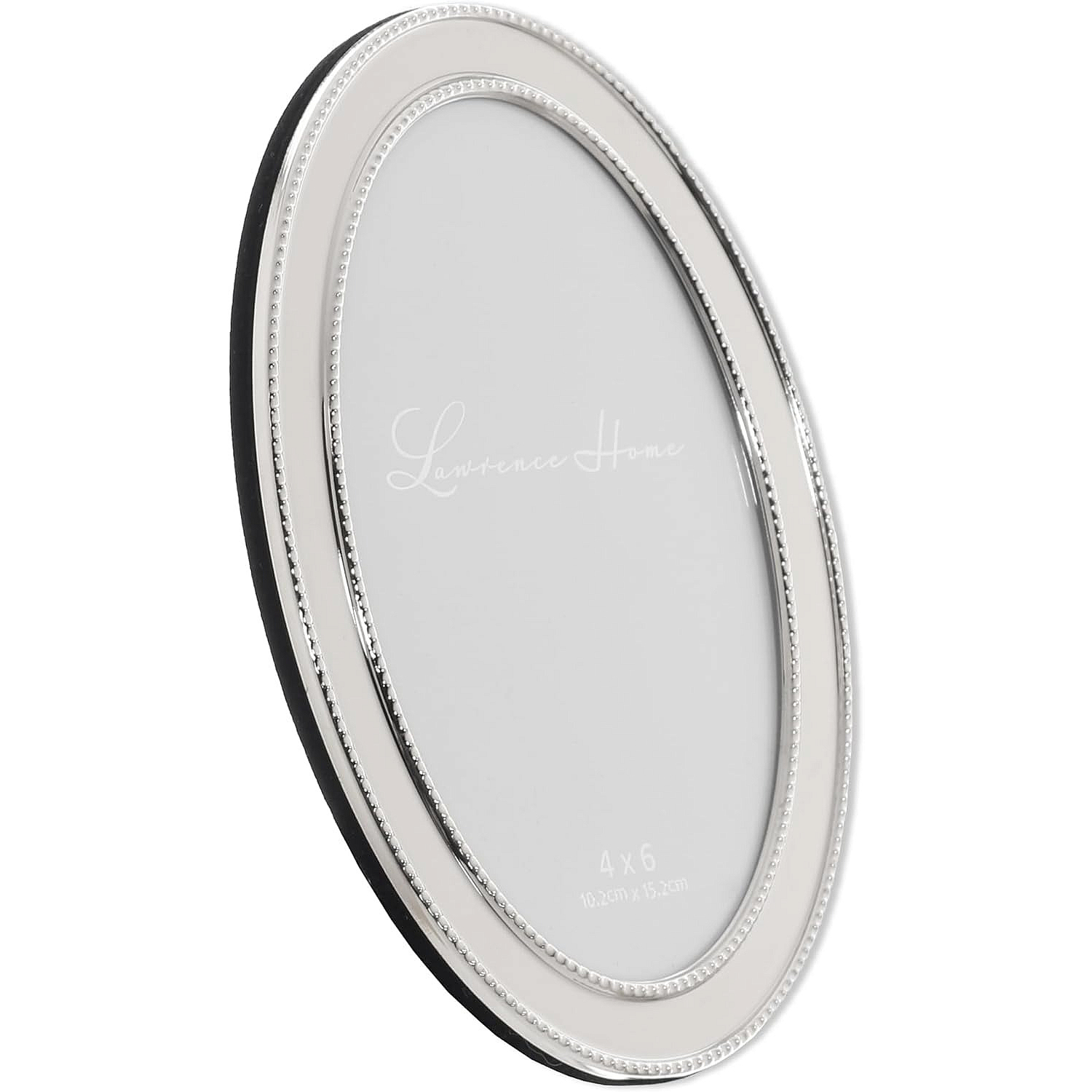 Main view Product Details Lawrence Frames® Polished silverplate Oval 4x6 w/caviar bead trim — Polished oval silver plate frame, nicely crafted caviar beading detailAttractively backed with a quality navy velvet for wonderful desk appeal.Easel back for portrait tabletop display. Glare resistant glass lens. Wall mount for easy hanging.By Lawrence®. Polished silverplate Oval 4x6 w/caviar bead trim Model #48093675 List $24.50 You pay $19.95 This item IS in stock and can be expected to ship 11/19/2025 Your Price Match is Active Your request for a price of $0.00 for a minimum quantity of has been accepted. You have [time] left to purchase this item for $0.00 instead of $19.95 each. Find a Lower Price? We BEAT All Authorized Retailers [?] FEATURESDisplays:4"x6"Material:SilverplateFinish:SilverOccasion:Anniversary, Birthday, Good luck, Mother`s Day, Retirement, Romantic, Teacher gifts, Thank-Motivate-Reward, Celebrating Travels, WeddingStyle:Classic, TraditionalOrientation:Vertical OnlyBrand:Lawrence Frames®Display Type:Desktop or Wall Approx. Overall Dimensions:4 3/4"x6 3/4"x3/4" This item ships in its own box SHARE THIS ITEM Share on Facebook