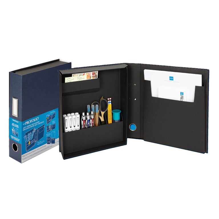 Main view Product Details Itoya Studio The ProFolio® Art + Desk Organizer - Navy-Blue - by Itoya® — The ProFolio® Art + Desk Organizer is a better way to organize art supplies, pens, and desk accessories. Opens like a book - with all your stationery items neatly arranged inside (Left side): Store pens, pencils, scissors,and sticky notes (Right side): letters, coloring books, sketch pads, envelopes, and other paper products Closes for easy shelf or tabletop storage - like a book Constructed of durable paper stock for heavy-duty use Features tabbed spine for personalizing the organizer on a shelf Modern, stylish and practical design Note: Items shown inside are for photography only. Organizer ships unfilled To view all styles in the Itoya family, click: Itoya® Photo Filing Systems The ProFolio® Art + Desk Organizer - Navy-Blue - by Itoya® Model #075633602211 List $24.00 You pay $18.95 In stock Ships next business day [?] Your Price Match is Active Your request for a price of $0.00 for a minimum quantity of has been accepted. You have [time] left to purchase this item for $0.00 instead of $18.95 each. Find a Lower Price? We BEAT All Authorized Retailers [?] FEATURESMaterial:Archival | Photo-SafeFinish:BlueOccasion:Back to School, Business & office, Craft Projects, GraduationStyle:Contemporary, Hi-tech, Sophisticated, Travel ReadyBrand:Itoya StudioDisplay Type:not applicable n/a Approx. Overall Dimensions:10 1/4"x12 1/4"x2 1/2" This item ships in its own box SHARE THIS ITEM Share on Facebook