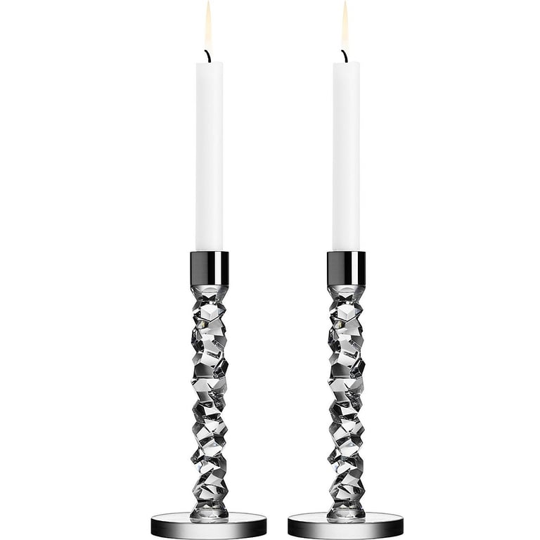 The CARAT 9in (MED) Crystal+Silver CANDLESTICKS by Orrefors® -Set of 2