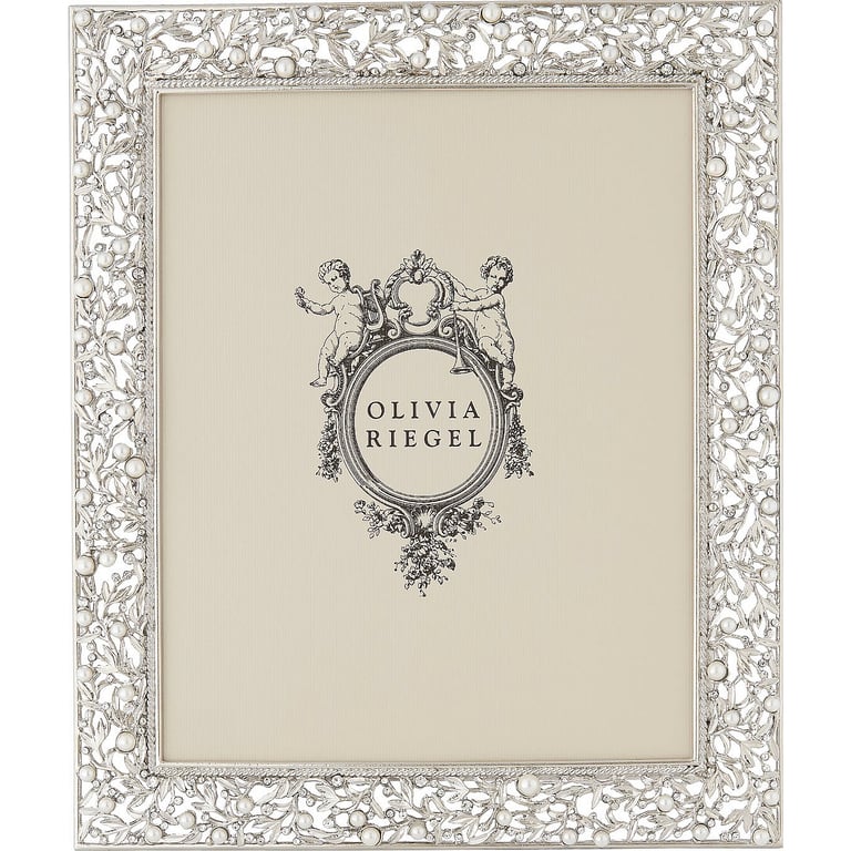 Main view Product Details Olivia Riegel Silver Eleanor 8x10 Frame by Olivia Riegel® — Silver finished pewter, encrusted with hand-set clear European crystals and faux pearls. Elegant gray hued moiré silk back, with easel designed for vertical or horizontal placement. Tarnish resistant. Signature luxury gift box included. An original design frame from the Olivia Riegel® collection Silver Eleanor 8x10 Frame by Olivia Riegel® OLIVIA RIEGEL® HOLIDAY CELEBRATION SAVINGS - Buy More / Save More * Add this item to your cart for the full details of this promotion. Conditions may apply. Model #851090000599 $300.00 This item IS in stock and can be expected to ship 01/16/2026 Your Price Match is Active Your request for a price of $0.00 for a minimum quantity of has been accepted. You have [time] left to purchase this item for $0.00 instead of $300.00 each. Find a Lower Price? We BEAT All Authorized Retailers [?] FEATURESDisplays:8"x10"Material:Jewels/crystalFinish:SilverOccasion:Anniversary, Birthday, Congratulations, Engagement, Home decorating, Mother`s Day, Romantic, WeddingStyle:Classic, Ornate, Romantic, TraditionalBrand:Olivia RiegelDisplay Type:Desktop Only Approx. Overall Dimensions:10"x12" This item ships in its own box SHARE THIS ITEM Share on Facebook