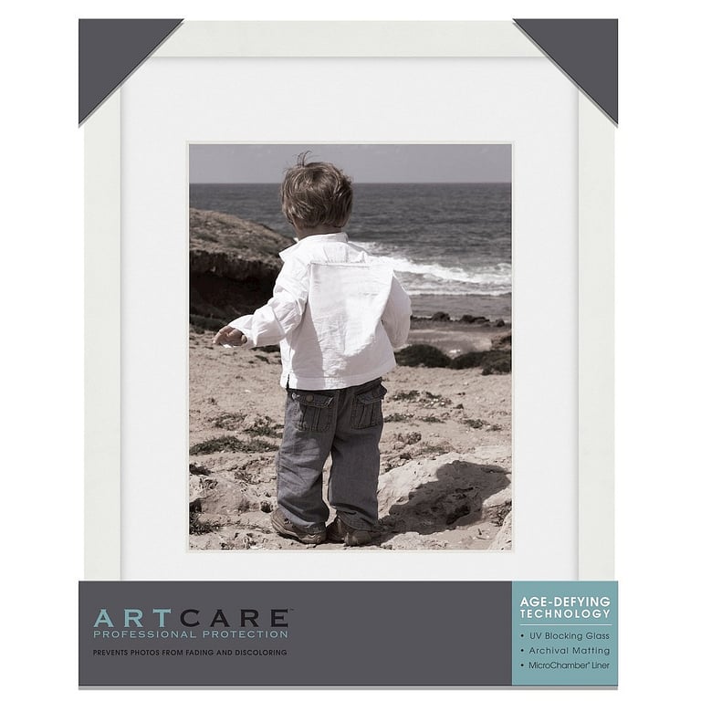 Main view Moulding detail Product Details Gallery Solutions™ Matte-White TRIBECA archival 11x14/8x10 matted wood frame from Gallery Solutions® — The TRIBECA matted wood frame displays an 8"x10" print in a traditional flat-top design. TRIBECA features a hardwood matte-white moulding and 4-ply Spanish-white mat to showcase your print. Frame opening without mat is 11"x14". Frame includes wall mounts for easy hanging, either vertical or horizontal.Acid-free mat and backing for life-time care of your print. Glare resistant, UV glazed glass lens.Crafted by ARTCARE®, a division of Gallery Solutions®. Here's a great video of the ARTCARE® process Matte-White TRIBECA archival 11x14/8x10 matted wood frame from Gallery Solutions® Model #55600277 List $58.00 You pay $46.95 In stock Can be shipped today [?] Your Price Match is Active Your request for a price of $0.00 for a minimum quantity of has been accepted. You have [time] left to purchase this item for $0.00 instead of $46.95 each. Find a Lower Price? We BEAT All Authorized Retailers [?] FEATURESDisplays:8"x10"Material:Wood (full grain)Finish:WhiteOccasion:Business & office, Home decorating, Teacher gifts, Team & coach gifts, Thank-Motivate-Reward, Celebrating TravelsStyle:Architectural, Classic, Contemporary, TraditionalOrientation:BothBrand:Gallery Solutions™Display Type:Wall Only Approx. Overall Dimensions:12 1/8"x15 1/8"x1 3/16" This item ships in its own box SHARE THIS ITEM Share on Facebook