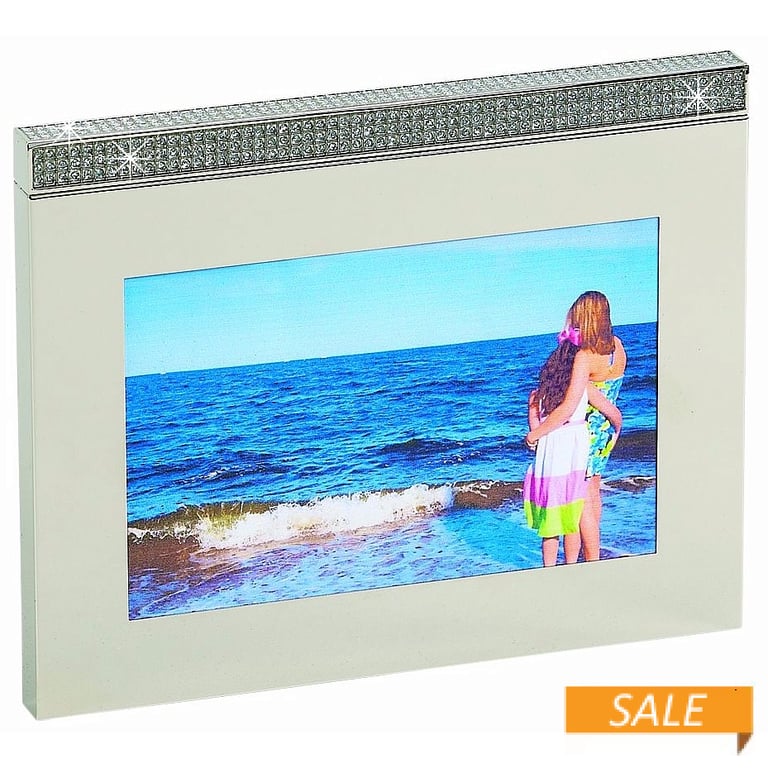 Product Details Sheridan Silversmiths WHITE JEWELS crystal frame — Nicely crafted, this bling designed frame is perfect for a glam shot. 3 rows of crystals adorn top and edge. Glare resistant glass lens. WHITE JEWELS crystal frame Model #047105039351 List $13.95 You pay $6.49 In stock Ships next business day [?] Your Price Match is Active Your request for a price of $0.00 for a minimum quantity of has been accepted. You have [time] left to purchase this item for $0.00 instead of $6.49 each. Find a Lower Price? We BEAT All Authorized Retailers [?] FEATURESDisplays:4"x6"Material:Jewels/crystalFinish:SilverOccasion:Anniversary, Engagement, WeddingStyle:Classic, Romantic, SophisticatedOrientation:Horizontal OnlyBrand:Sheridan SilversmithsDisplay Type:Desktop Only This item ships in its own box SHARE THIS ITEM Share on Facebook