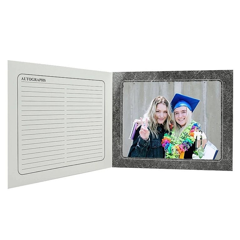 Main view Product Details TAP™ CLASSMATES Marble Single 10x8 Photo Folder Frame (sold in 10s) — The TAP Marble Classmate Folder is a great way to preserve special memories in a child's life. Neutral gray marble color compliments any photo background. There is an autograph area on the inside cover. Kids will love signing their names to share with all of their friends. Don't forget to add foil imprinting with your studio die. Constructed with high-quality printed coated board in a black marble color Designed to hold a single class picture. Bottom loading "quick load" design Holds 1 - 10x8" Group Photo Folds completely closed or to stand up for display Features an autograph area on the inside cover Priced individually; packed and sold in 10's.Crafted by TAP Packaging. CLASSMATES Marble Single 10x8 Photo Folder Frame (sold in 10s) Model #69018291 List $20.00 You pay $14.90 ( set of 10 / $1.49 ea ) This item can be expected to ship by 12/02/2025. Order now by clicking ADD TO CART (below); you are only charged when we actually ship. Or, Click here to be automatically notified when it comes back in stock. Your Price Match is Active Your request for a price of $0.00 for a minimum quantity of has been accepted. You have [time] left to purchase this item for $0.00 instead of $1.49 each. Find a Lower Price? We BEAT All Authorized Retailers [?] FEATURESDisplays:8"x10"Material:Card-stockFinish:Gray/CharcoalOccasion:Group Events + Parties, GraduationStyle:Classic, Traditional, Travel Ready, Minimal, Sports & leisureOrientation:Horizontal OnlyBrand:TAP™Display Type:not applicable n/a Approx. Overall Dimensions:5 1/4"x7 1/4" SHARE THIS ITEM Share on Facebook