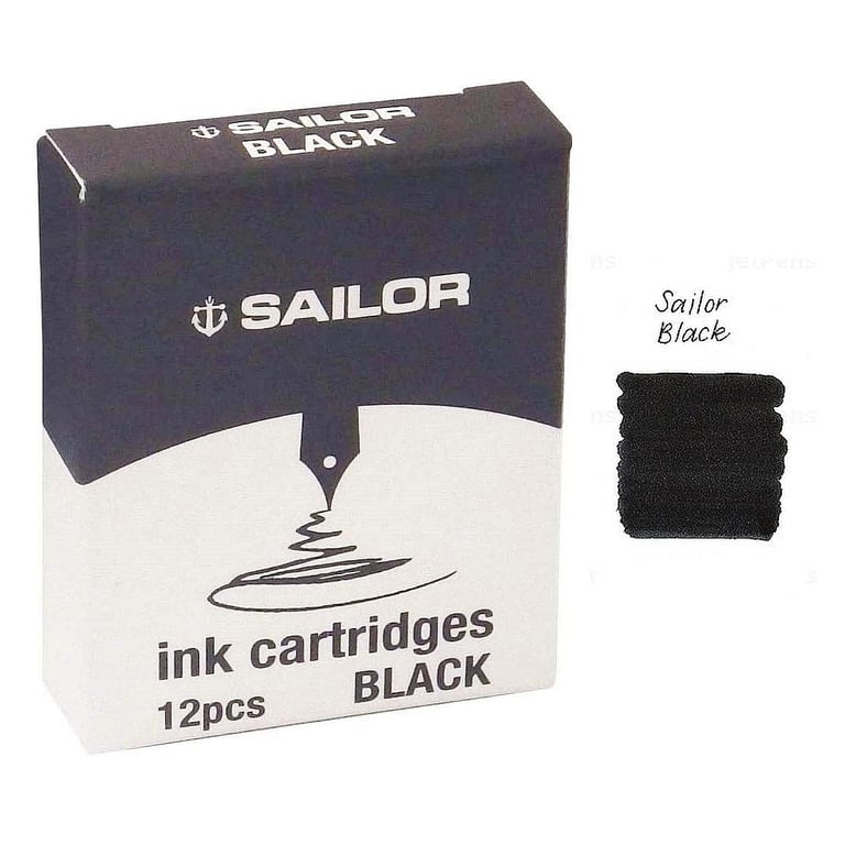 Back to results Scroll Items 8464 of 10936 Product Details Sailor® Japan GENUINE Fountain Pen Ink Cartridges BLACK Sailor® - Pack of 12 — This is a pack of 12 Black ink cartridges, specially formulated for Sailor brand pens. Box of 12 Sailor fountain pen Ink cartridges Will only fit Sailor Pens that accept cartridges Water-based dye ink is smooth flowing Black ink cartridges GENUINE Fountain Pen Ink Cartridges BLACK Sailor® - Pack of 12 Model #4901680180074 List $8.00 You pay $6.95 This item IS in stock and can be expected to ship 01/28/2026 In stock Your Price Match is Active Your request for a price of $0.00 for a minimum quantity of has been accepted. You have [time] left to purchase this item for $0.00 instead of $6.95 each. Find a Lower Price? We BEAT All Authorized Retailers [?] FEATURESMaterial:OtherFinish:BlackOccasion:Business & office, Craft ProjectsStyle:Contemporary, Travel ReadyBrand:Sailor® JapanDisplay Type:not applicable n/a This item ships in its own box SHARE THIS ITEM Share on Facebook