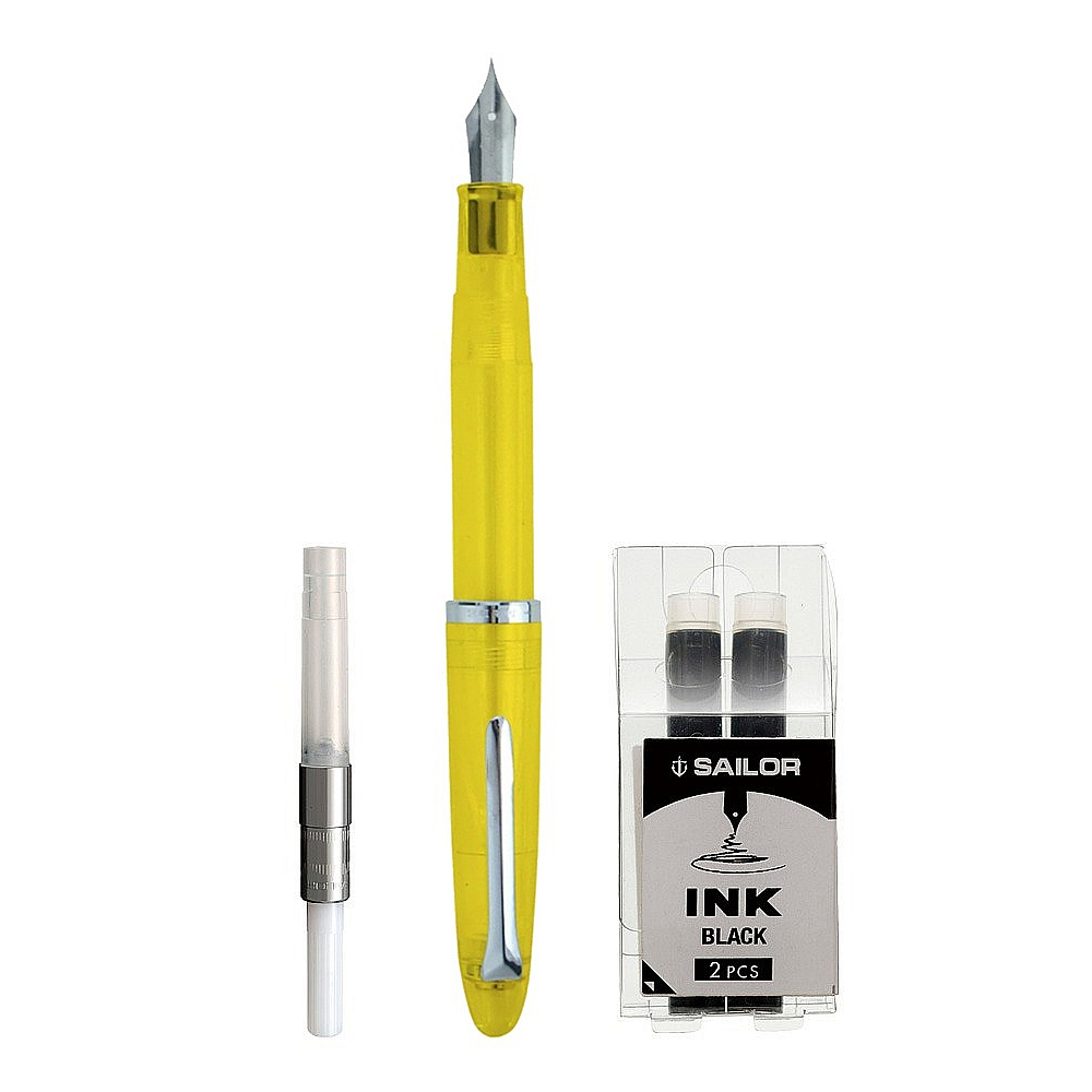 Main view addl view Product Details Sailor® Japan The COMPASS Steel YELLOW Fountain Pen Set MF Nib by Sailor® — Model 1911 Steel - Transparent YELLOW with Silver Trim and MF nib. The Sailor Compass 1911 Steel Fountain Pen Series is an affordable introduction to Sailor Pens in Japan. Instead of 14k gold that had been commonly used, these pens have more practical stainless steel nibs in a medium-fine width. Trimmed with silver, the body and cap are made of transparent clear resin. This pen comes packaged in a gift box with an ink adapter/converter and 2 Sailor black ink cartridges. Made in Japan. The COMPASS Steel YELLOW Fountain Pen Set MF Nib by Sailor® Model #33350075 List $50.00 You pay $45.95 In stock Ships next business day [?] Your Price Match is Active Your request for a price of $0.00 for a minimum quantity of has been accepted. You have [time] left to purchase this item for $0.00 instead of $45.95 each. Find a Lower Price? We BEAT All Authorized Retailers [?] FEATURESMaterial:Stainless SteelFinish:YellowOccasion:Business & office, Corporate gifts, GraduationStyle:Contemporary, Travel ReadyBrand:Sailor® JapanDisplay Type:not applicable n/a This item ships in its own box SHARE THIS ITEM Share on Facebook