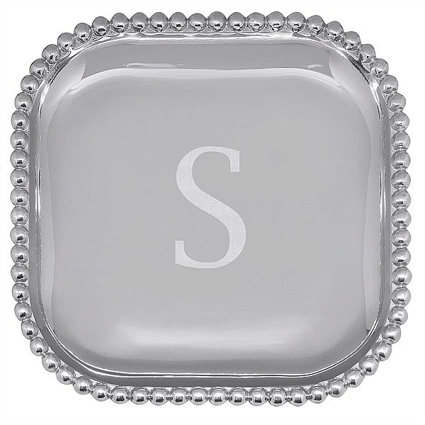 Product Details Mariposa® The original PEARLED 10in SQUARE PLATTER Engraved -S- by Mariposa® — The "S" Engraved PEARLED PLATTER designed by Michael Updike and hand-crafted by Mariposa. People love the Mariposa casual, sculpted elegance paired with their strong, virtually carefree material. Their artisan handcrafted look in recycled aluminum is both pleasing to the eye and touch, as well as 100% ecologically sound. Important Note: Mariposa items are hand engraved. Your piece may differ slightly from the photo. To see all monograms of this platter, click : "Pearled 10in platters - all letters" SendAFrame stocks the entire Mariposa® picture frame line - and related Brand and Design styled items like this Monogram engraved platter. To start - or add to your collection, click: Mariposa® Design Collection Product Care: Mariposa metals are handcrafted from 100% recycled aluminum Buffed until brilliant All items are food-safe and will not tarnish Handwash in warm water with mild soap and towel dry immediately Do not place in dishwasher or microwave Avoid extended contact with water, salty or acidic foods; coat lightly with vegetable oil or spray to avoid staining Warm to 350 degrees for hot foods. Freeze or chill for summer entertaining Cutting directly on the metal surface will scratch the finish Occasional use of non-abrasive metal polish will revive luster Leaving other metals on metal surfaces may cause discoloration The original PEARLED 10in SQUARE PLATTER Engraved -S- by Mariposa® Mariposa® FALL CELEBRATION Savings - Buy More / Save More * Add this item to your cart for the full details of this promotion. Conditions may apply. Model #808813158945 $120.00 This item is currently out of stock and we do not have an expected date at the present time. click here to be automatically notified when it comes back in stock or email merchandising@sendaframe.com for availability information. You can place this item in your shopping cart. It will be added to the 'saved for later' section. Your Price Match is Active Your request for a price of $0.00 for a minimum quantity of has been accepted. You have [time] left to purchase this item for $0.00 instead of $120.00 each. Find a Lower Price? We BEAT All Authorized Retailers [?] Approx. Overall Dimensions:10 1/2"x10 1/2" This item ships in its own box SHARE THIS ITEM Share on Facebook
