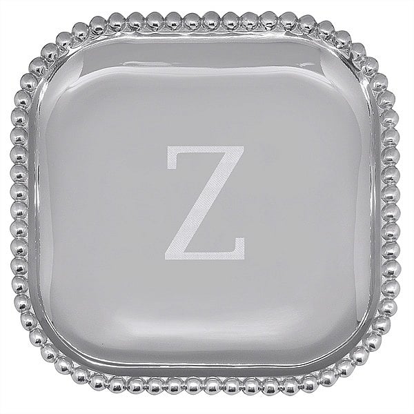 Product Details Mariposa® The original PEARLED 10in SQUARE PLATTER Engraved -Z- by Mariposa® — The "Z" Engraved PEARLED PLATTER, hand-crafted by Mariposa. People love the Mariposa casual, sculpted elegance paired with their strong, virtually carefree material. Their artisan handcrafted look in recycled aluminum is both pleasing to the eye and touch, as well as 100% ecologically sound. Important Note: Mariposa items are hand engraved. Your piece may differ slightly from the photo. To see all monograms of this platter, click : "Pearled 10in platters - all letters" SendAFrame stocks the entire Mariposa® picture frame line - and related Brand and Design styled items like this Monogram engraved platter. To start - or add to your collection, click: Mariposa® Design Collection Product Care: Mariposa metals are handcrafted from 100% recycled aluminum Buffed until brilliant All items are food-safe and will not tarnish Handwash in warm water with mild soap and towel dry immediately Do not place in dishwasher or microwave Avoid extended contact with water, salty or acidic foods; coat lightly with vegetable oil or spray to avoid staining Warm to 350 degrees for hot foods. Freeze or chill for summer entertaining Cutting directly on the metal surface will scratch the finish Occasional use of non-abrasive metal polish will revive luster Leaving other metals on metal surfaces may cause discoloration The original PEARLED 10in SQUARE PLATTER Engraved -Z- by Mariposa® Mariposa® FALL CELEBRATION Savings - Buy More / Save More * Add this item to your cart for the full details of this promotion. Conditions may apply. Model #808813159010 $120.00 This item is currently out of stock and we do not have an expected date at the present time. click here to be automatically notified when it comes back in stock or email merchandising@sendaframe.com for availability information. You can place this item in your shopping cart. It will be added to the 'saved for later' section. Your Price Match is Active Your request for a price of $0.00 for a minimum quantity of has been accepted. You have [time] left to purchase this item for $0.00 instead of $120.00 each. Find a Lower Price? We BEAT All Authorized Retailers [?] Approx. Overall Dimensions:10 1/2"x10 1/2" This item ships in its own box SHARE THIS ITEM Share on Facebook