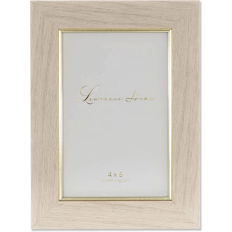 Back to results Scroll Items 3220 of 11087 Main view Product Details Lawrence Frames® CHESTER Natural/Gold 4x6 frame — Quality composite decorative picture frame with natural wood grain finish and gold inner trim. Easy open turn button black velvet backing makes it simple to open and insert your photo. Includes hangers for wall mounting and easel backing for tabletop display. By Lawrence®, fine frames for generations. CHESTER Natural/Gold 4x6 frame Model #751148085915 List $17.00 You pay $12.95 This item IS in stock and can be expected to ship 01/16/2026 Your Price Match is Active Your request for a price of $0.00 for a minimum quantity of has been accepted. You have [time] left to purchase this item for $0.00 instead of $12.95 each. Find a Lower Price? We BEAT All Authorized Retailers [?] FEATURESDisplays:4"x6"Material:Wood (mdf/engineered)Finish:Brown(Light)/Tan, NaturalOccasion:Business & office, Home decoratingStyle:TraditionalOrientation:BothBrand:Lawrence Frames®Display Type:Desktop or Wall Approx. Overall Dimensions:5 5/8"x7 5/8"x13/16" This item ships in its own box SHARE THIS ITEM Share on Facebook