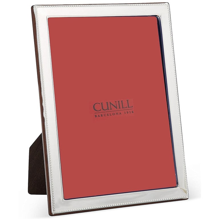 Main view sample back Product Details Cunill® Silver BEAD BEVEL Fine Sterling Silver 5x7 Frame by Cunill® — BEAD BEVEL is a beautiful sterling silver style, even to the backing which is a fitted wood piece to easily lock-in your photo. An outer bead trim gives this very contemporary frame a fine tailored look and feel. The Cunill quality is unsurpassed. Each piece is crafted from a single sheet of fine sterling silver. Every inch is turned polished and inspected. Even the backing is a fitted wood piece to easily lock-in your photos. Note the signature sterling lozenge latches - a hallmark of Cunill since 1916. Each piece is debossed on front with the family mark and .925 (sterling silver), proudly giving signature to the quality this 100+ year old company has earned. Cunill sterling never needs polishing - it is finely lacquered to keep it tarnish free.Crafted in, and imported from, Cunill Italy. Click for the complete Cunill® frame collection. BEAD BEVEL Fine Sterling Silver 5x7 Frame by Cunill® Model #37118387 List $160.00 You pay $146.95 In stock Can be shipped today [?] Your Price Match is Active Your request for a price of $0.00 for a minimum quantity of has been accepted. You have [time] left to purchase this item for $0.00 instead of $146.95 each. Find a Lower Price? We BEAT All Authorized Retailers [?] FEATURESDisplays:5"x7"Material:Sterling Silver (fine)Finish:SilverOccasion:Anniversary, Birthday, Business & office, Corporate gifts, Engagement, Graduation, Retirement, Wedding, Employee honorsStyle:Ornate, Sophisticated, TraditionalOrientation:BothBrand:Cunill® SilverDisplay Type:Desktop Only This item ships in its own box SHARE THIS ITEM Share on Facebook